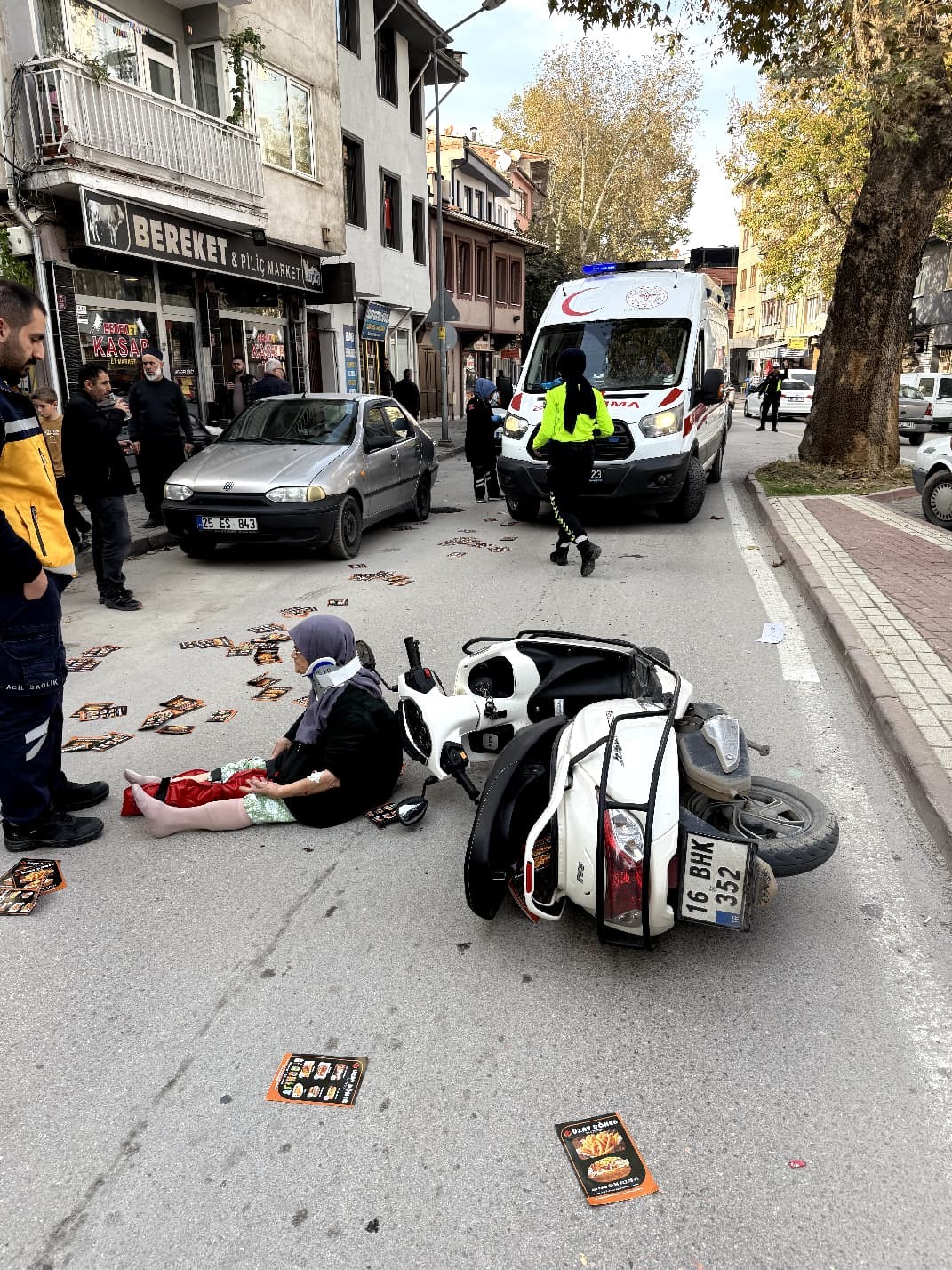 Kaza saat 14.00 sıralarında Mahmudiye mahallesi Kasımefendi caddesi üzerinde meydana geldi. Cadde üzerinde seyir halinde olan Sürücü Mustafa Ç.(26) yönetimindeki 16 BHK 352 plakalı motosiklet, karşıdan karşıya geçmeye çalışan Emine A.(73)’ya çarptı. Çarpmanın etkisiyle devrilen motosikletten düşen sürücü ile yaya kadın yaralandı. Yaralılar kaza yerine sevk edilen Ambulansla İnegöl Devlet Hastanesine kaldırıldılar. Kaza anı bir işyerinin güvenlik kamerasına saniye saniye yansıdı. Güvenlik kamera görüntülerinde; çarpışmayla devrilen motosikletteki sürücü ile yaya kadının 6 metre sürüklendiği görüldü.