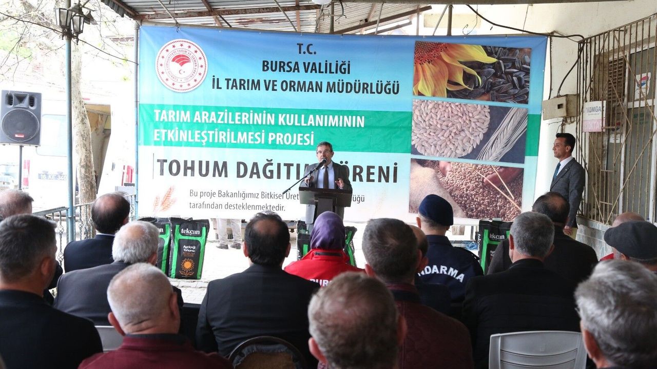 Bitkisel Üretim ve Bitki Sağlığı Şube Müdürü Yasemin Yiğit Bozkurt'un verdiği bilgilerde, Proje Kapsamında Mudanya İlçesi Çayönü Mahallesinde gerçekleşen tohum dağıtım programına katılan Bursa İl Tarım ve Orman Müdür Yardımcısı Mehmet Sülün, dağıtılan yağlık ayçiçek tohum çeşidinin ürün verimi olarak üstün bir çeşit olduğunu belirtti. Ayçiçek tohumunun yetiştirilme süreci hakkında İlçe Tarım ve Orman Müdürlüklerinde bilgi alınabileceğini vurgulayan Sülün, dağıtılan tohumların tüm üreticilere ve ülkemize hayırlı olmasını temenni etti.