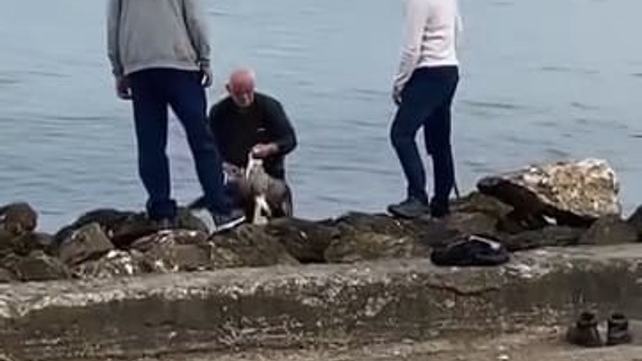 Martının su üzerinde hareketsiz şekilde çırpınmaya çalıştığını gören vatandaş, hiç tereddüt etmeden kıyafetleriyle birlikte denize girerek martıyı güvenli bir alana çıkardı. Ardından martının üzerine dolanan misina ve kancaları dikkatlice çıkararak yaralanmasını engelledi.