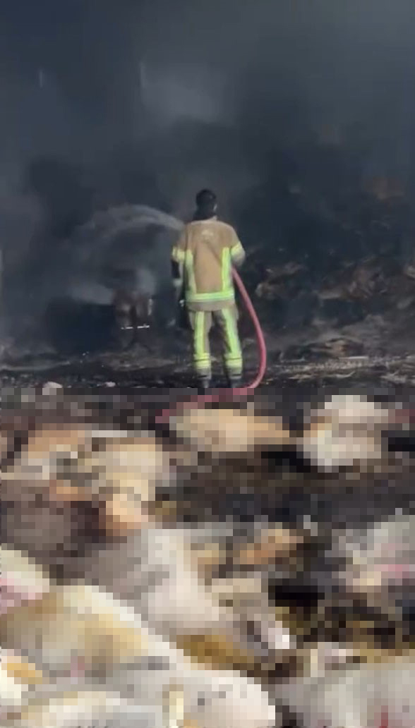 Yangın, sabah saatlerinde Mudanya ilçesi Çaylı Mahallesi’nde Hasan Kaplan’a ait ahır ve samanlıkta henüz belirlenemeyen nedenle çıktı. Kısa sürede yayılan alevlerin sardığı ahırdaki yaklaşık 50 koyun, 120 kuzu telef oldu. Ayrıca 2 bin saman balyası da kullanılamaz hale geldi. İhbar üzerine bölgeye sevk edilen 2 itfaiye aracıyla yangın kontrol altına alındı. Soğutma çalışmalarının ardından bölgede inceleme başlatıldı. Güvenlik kamerasına anbean yansıyan yangının çıkış sebebi araştırılıyor.
