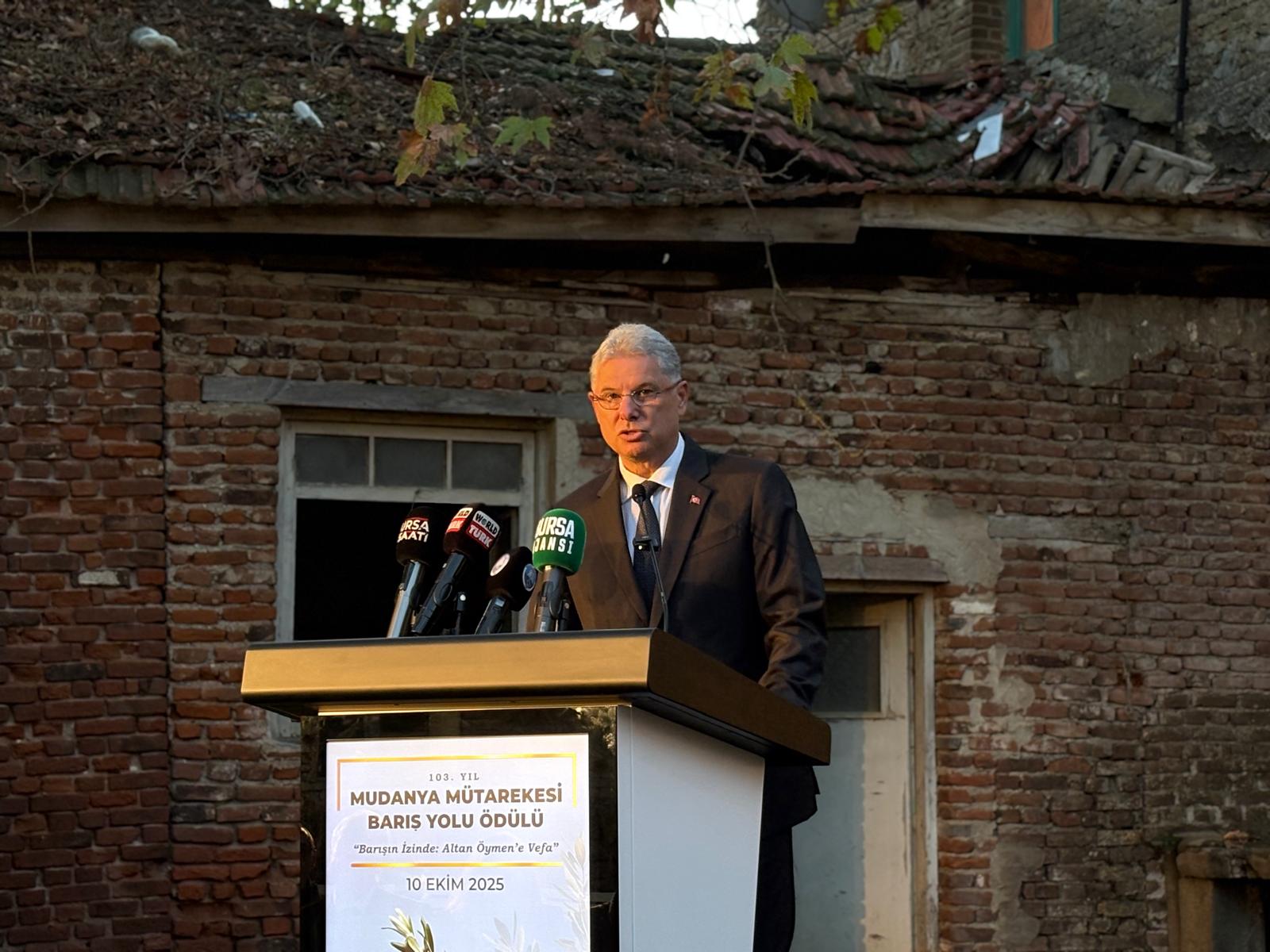 Başkan Dalgıç, Mütareke Barış Yolu Ödülü’nün 2022 yılından bu yana gazetecilikten sanata, kültürden emeğe kadar farklı alanlarda barışa katkı sunan isimlere verildiğini hatırlatarak, “Bu yılki ödülümüz, kalemiyle ve vicdanıyla barışı savunan, demokrasinin sesi olmuş Altan Öymen’in anısına takdim ediliyor” diye konuştu.