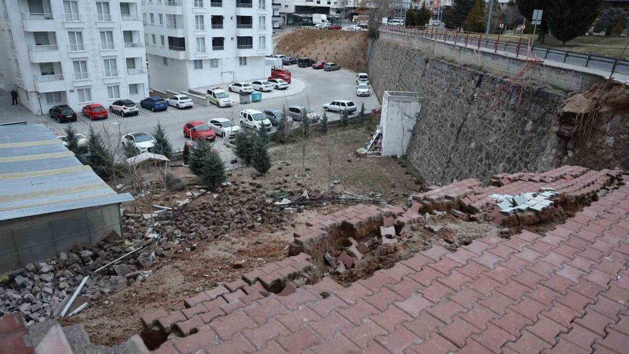 Nevşehir'de yaklaşık 15 metre yüksekliğindeki istinat duvarı çöktü.