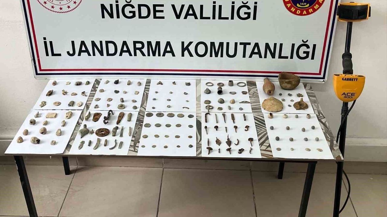 Niğde'de jandarma ekiplerince düzenlenen 'Anadolu Mirası' operasyonunda çok sayıda tarihi eser ele geçirildi, 1 şüpheli hakkında işlem başlatıldı.
