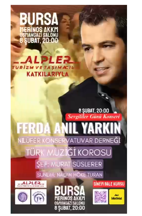 Konser, Alpler Turizm ve Taşımacılık katkılarıyla düzenlenirken, etkinlik Bursa’daki sanatseverlerden yoğun ilgi görmesi beklenen organizasyonlar arasında yer alıyor.