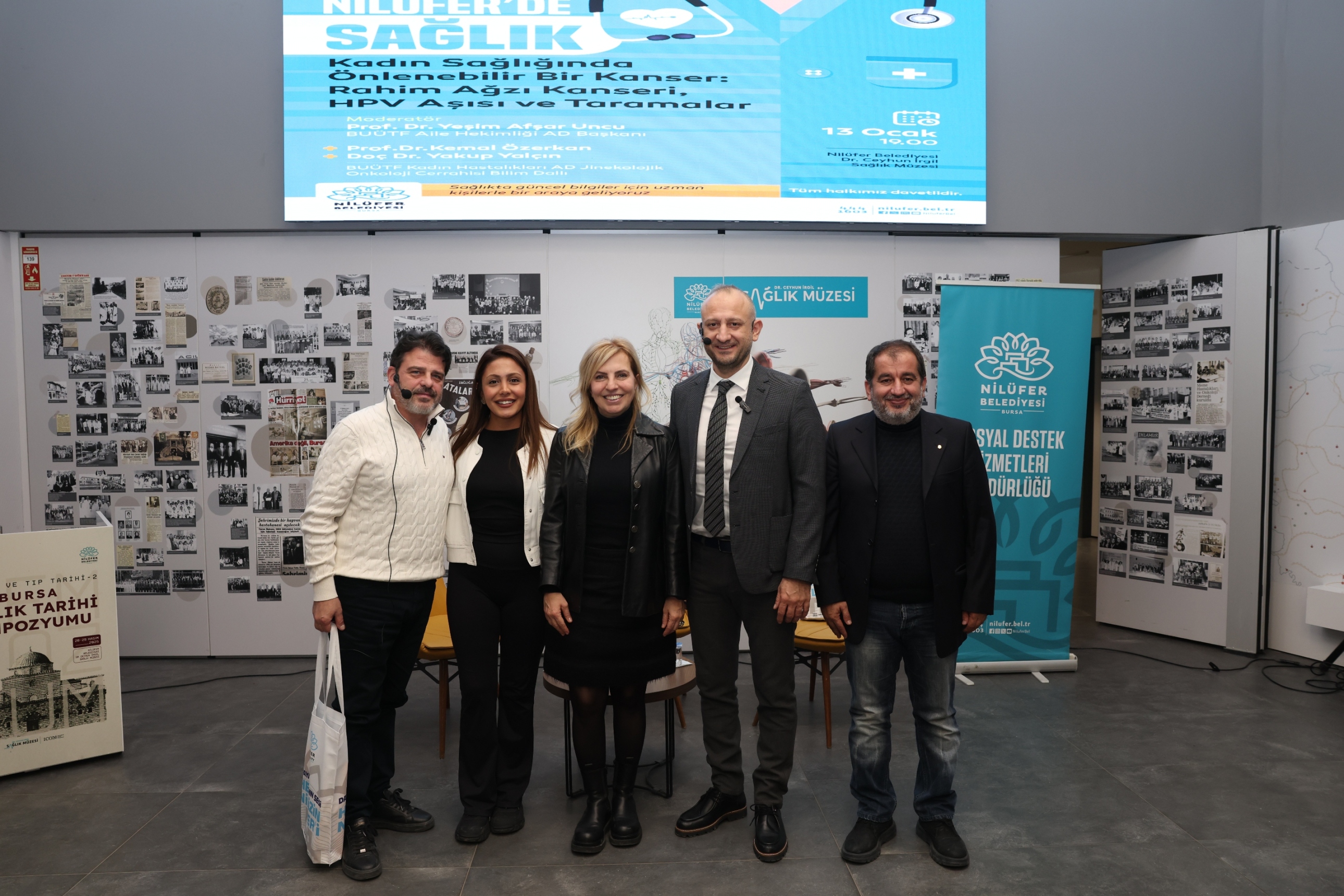 Nilüfer'de Sağlık Buluşmaları kapsamında "Kadın Sağlığında Önlenebilir Bir Kanser: Rahim Ağzı Kanseri, HPV Aşısı ve Taramalar" söyleşisi gerçekleştirildi. Nilüfer Belediyesi Dr. Ceyhun İrgil Sağlık Müzesi'nde moderatörlüğünü Bursa Uludağ Üniversitesi (BUÜ) Aile Hekimliği Ana Bilim Dalı Öğretim Üyesi Prof. Dr. Yeşim Afşar Uncu'nun yaptığı söyleşide, BUÜ Kadın Hastalıkları Jinekolojik Onkoloji Cerrahisi Bilim Dalı öğretim üyeleri Prof. Dr. Kemal Özerkan ve Doç. Dr. Yakup Yalçın konuk oldu.