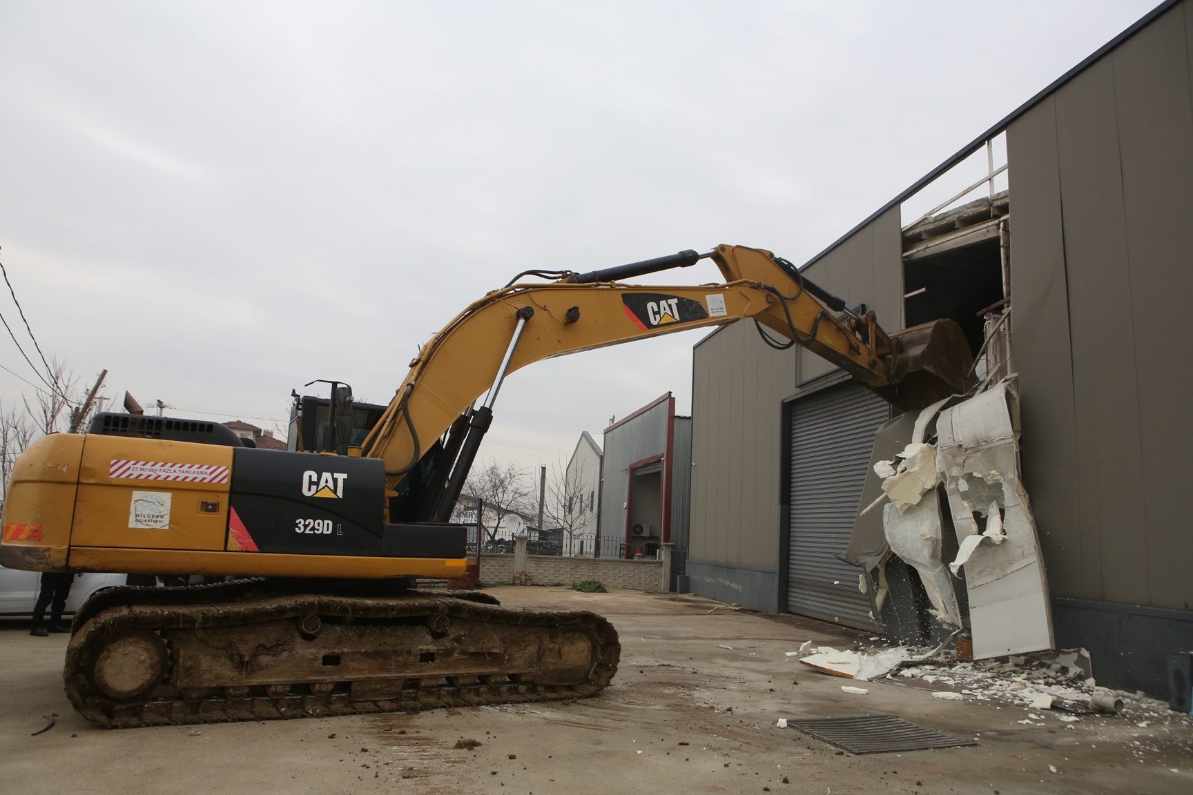 Tahtalı Mahallesi'nde 900 metrekare, Yaylacık Mahallesi'nde de 400 metrekare üzerinde faaliyet gösteren iki iş yeri ekipler tarafından içerideki malzemelere zarar vermeden kısmi şekilde yıkıldı.