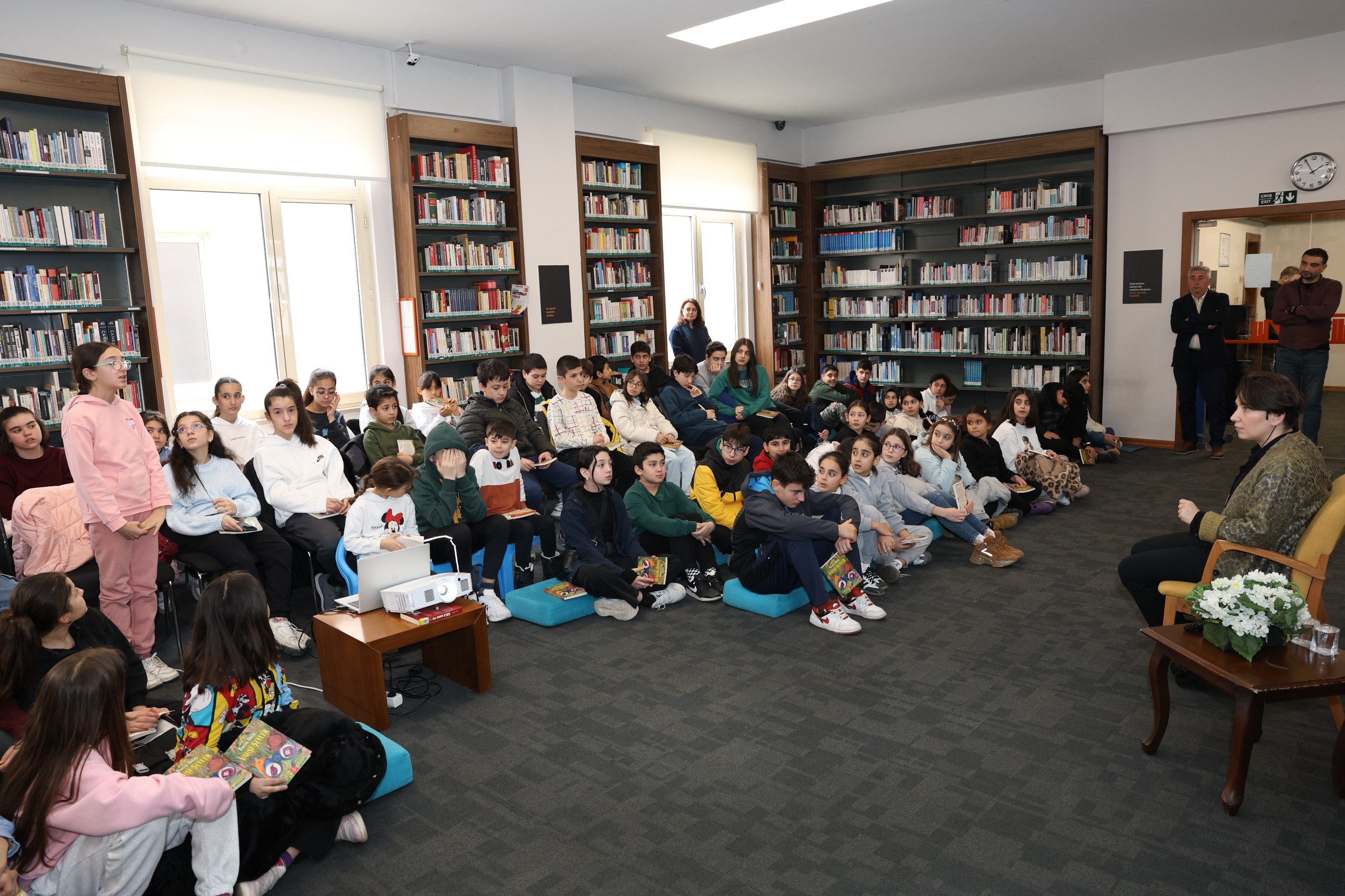 Söyleşinin sonunda çocukların sorularını içtenlikle yanıtlayan Burcu Aktaş, günün anısına kitaplarını imzaladı.