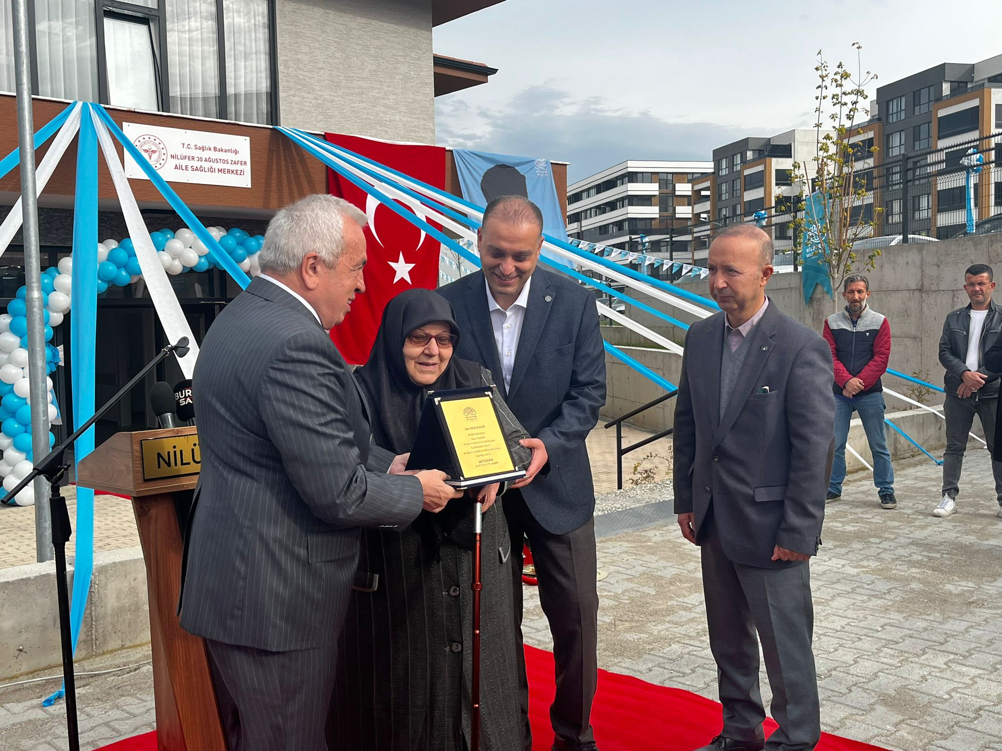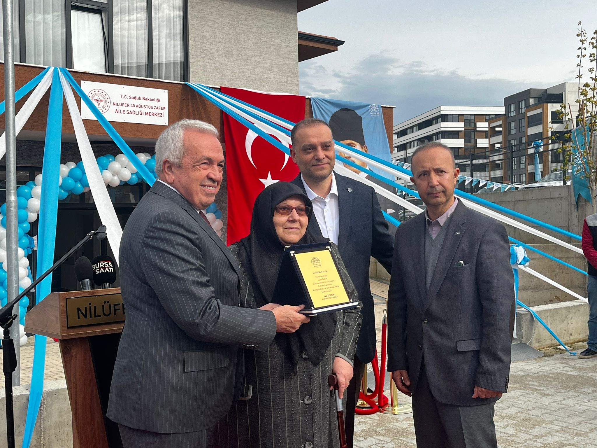 Konuşmaların ardından plaket takdimi yapıldı ve kurdele kesilerek Kazım Özdilek Ek Hizmet Binası ile 30 Ağustos Zafer Aile Sağlığı Merkezi resmen hizmete açıldı.