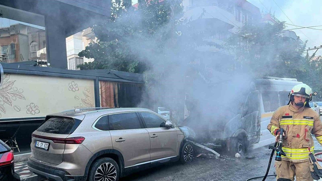 İtfaiye ekiplerinin müdahalesiyle yangın kontrol altına alınırken, midibüs ve yakınında park halinde bulunan bir otomobil yanarak kullanılamaz hale geldi.