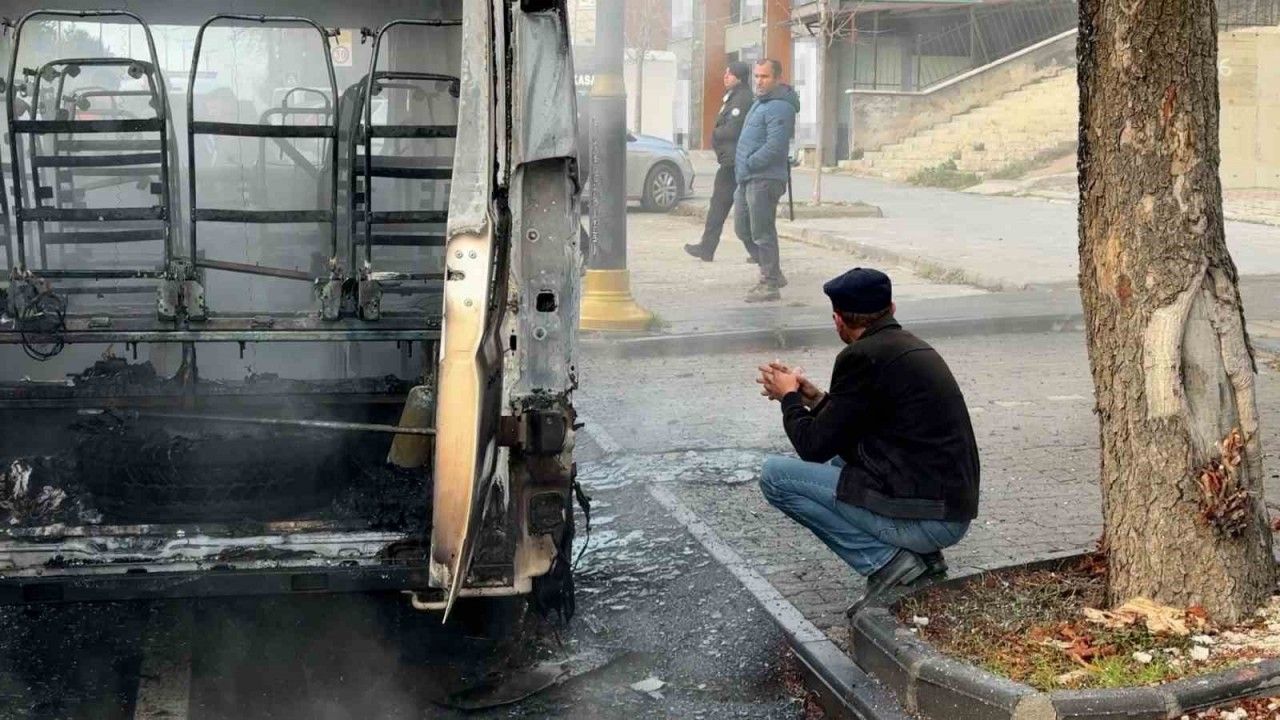 Sivas’ta park halinde bulunan bir okul servisi henüz bilinmeyen bir nedenle alev aldı. İçinde öğrenci bulunmaması oluşabilecek bir faciayı önlerken, minibüsün yanışını çaresizce izleyen sürücü büyük üzüntü yaşadı.