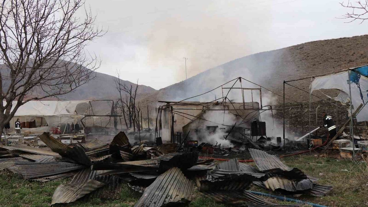 Oltu ilçesinde elektrik kontağından çıktığı değerlendirilen yangında arı kovanları ve tarımsal ekipmanlar yanarak kül oldu.