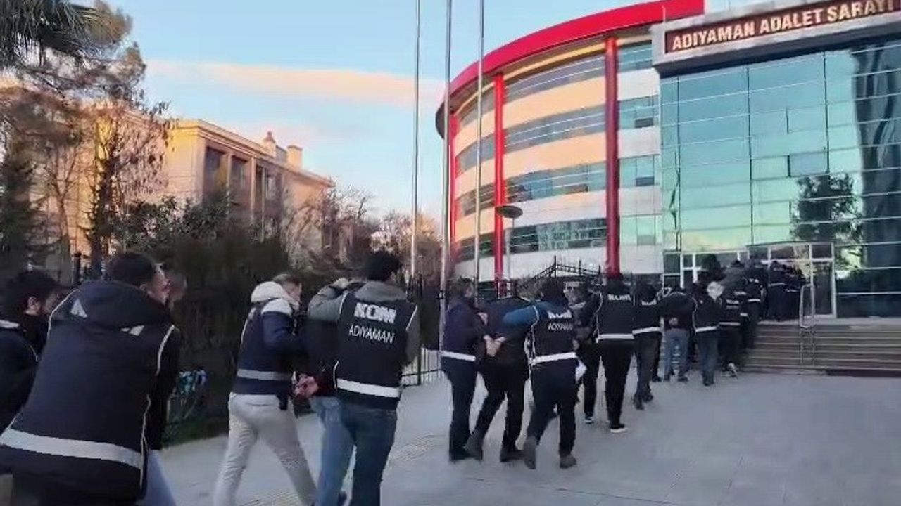 Adıyaman İl Emniyet Müdürlüğü'nde işlemleri tamamlanan 21 şüpheli şahıs Adıyaman Adliyesi'ne sevk edildi. Burada mahkemeye çıkarılan 21 şahıstan 14'ü tutuklanarak cezaevine gönderilirken 7 şahıs ise adli kontrol şartıyla serbest bırakıldı.