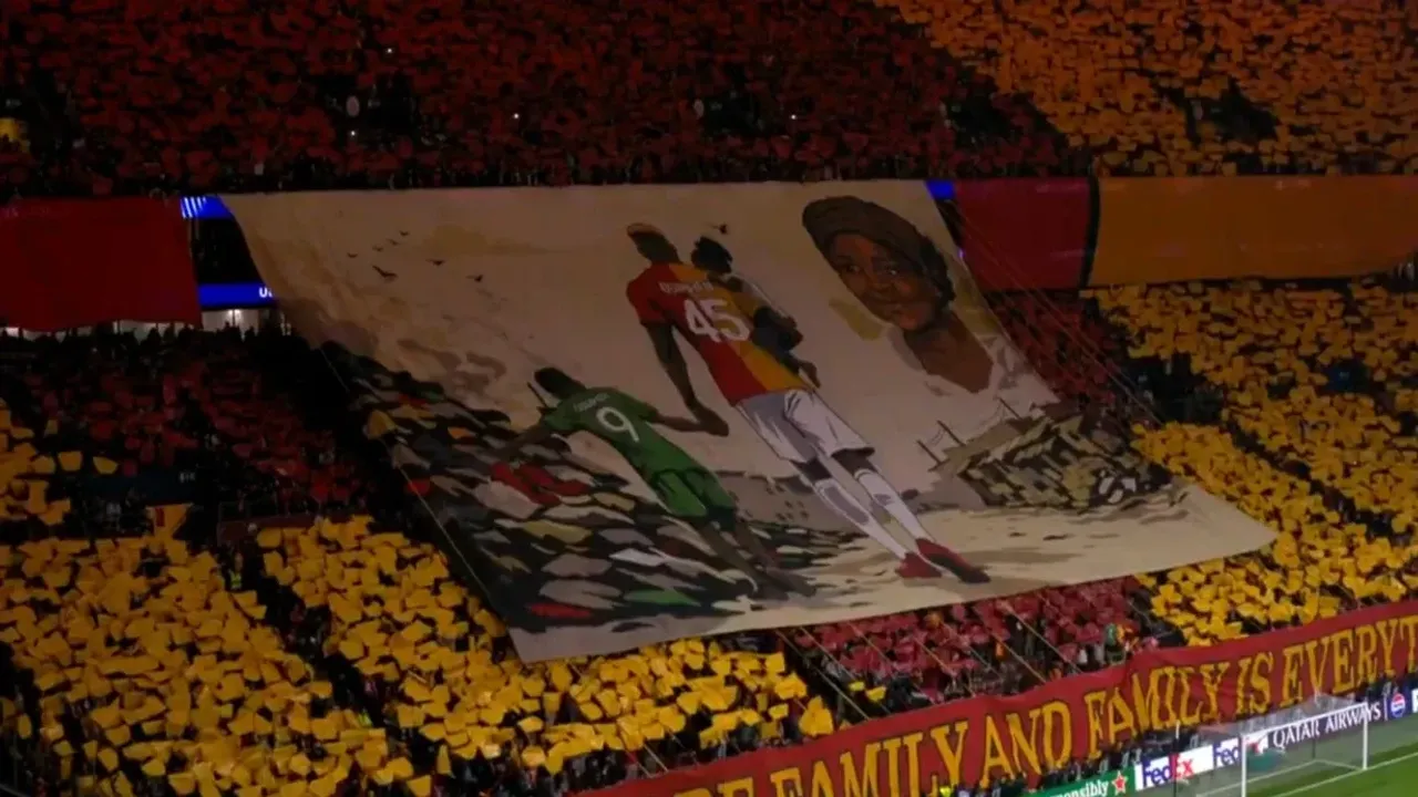 Koreografide, çocukken annesini kaybeden Osimhen’in annesinin resmi yer alırken, Osimhen’in Galatasaray forması giymiş hali, Nijerya’da zor koşullarda yaşayan çocuk hâliyle el ele gösterildi. Tribünlerde ayrıca “Biz aileyiz ve aile her şeydir” mesajı dikkat çekti.