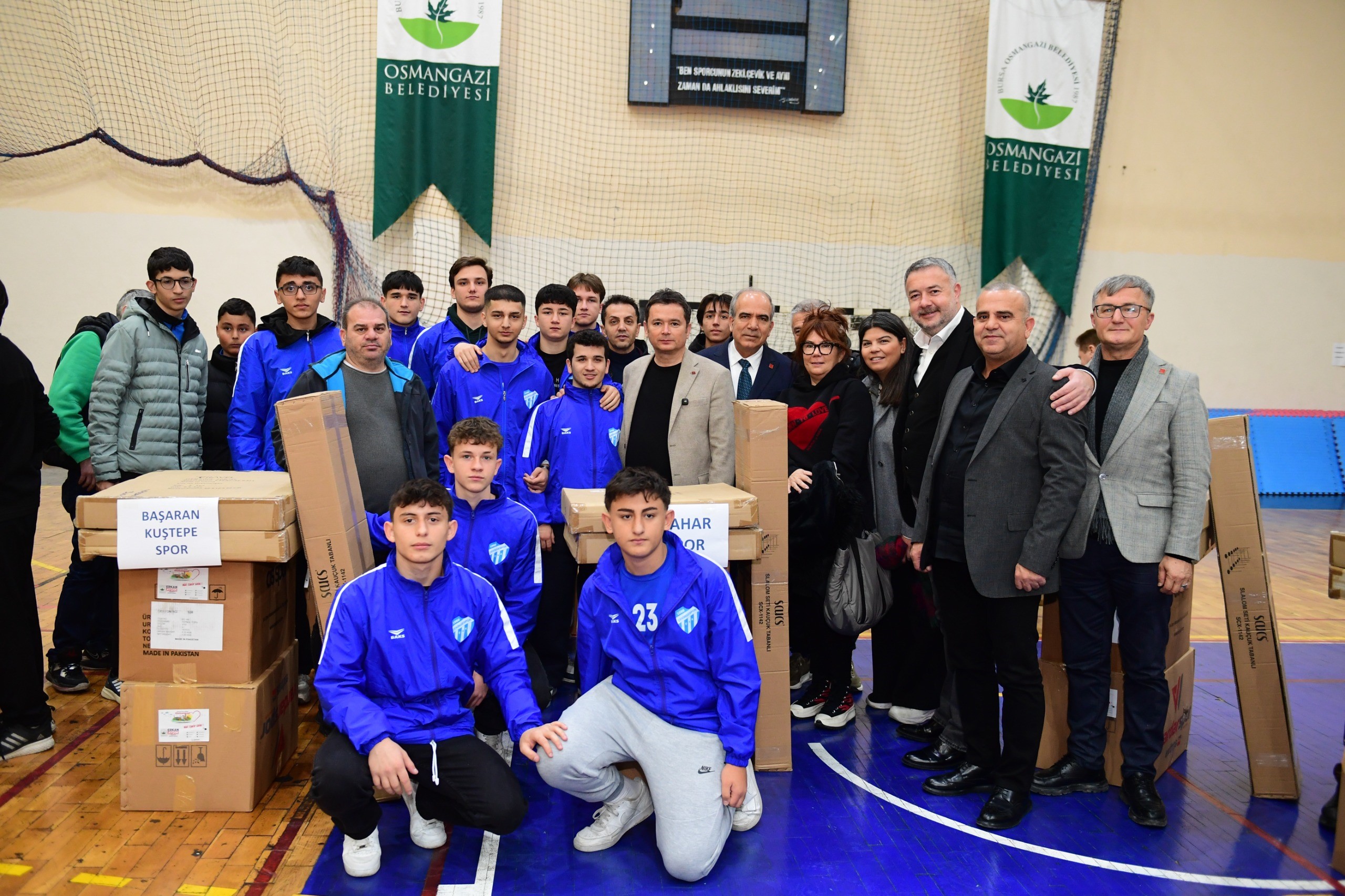 Spora yaptığı yatırımlarla hem gençlere, hem de amatör spor kulüplerine güç katan Osmangazi Belediyesi, 72 spor kulübüne antrenman malzemeleri desteği gerçekleştirdi. Dikkaldırım Spor Salonu’nda düzenlenen Amatör Spor Kulüpleri Malzeme Dağıtım Töreni’ne Osmangazi Belediye Başkanı Erkan Aydın, Osmangazi Belediyespor Başkanı Fatih Karayılan, Bursa Amatör Spor Kulüpleri Federasyonu Başkanı Çetin Yıldız, Osmangazi Kulüpler Birliği Başkanı Şafak Yıldırım, Osmangazi’de faaliyet gösteren spor kulüplerinin başkanları ve sporcular katıldı. Amatör spor kulüplerinin faaliyetlerini artırarak devam etmeleri ve sporcuların gelişimlerine katkı sağlamaları amacıyla, ihtiyaçlara yönelik belirlenen ve denge aleti, futbol topları, yelekler, huniler gibi pek çok antrenman ekipmanlarını içerisinde barındıran malzemeler, tören ile birlikte kulüp temsilcilerine teslim edildi.
