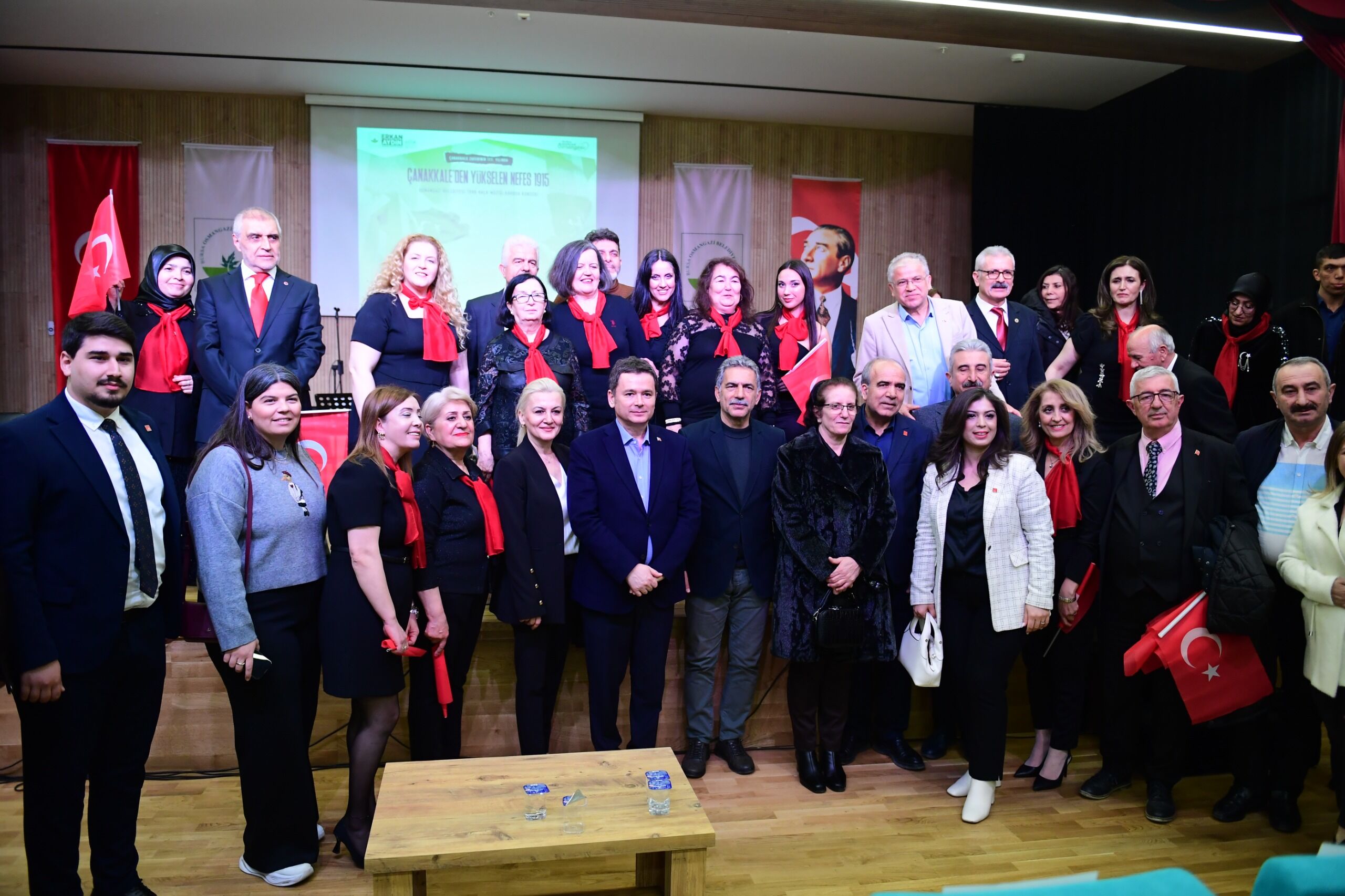 Osmangazi Belediye Başkanı Erkan Aydın, tiyatro sanatçısı Akif Oktay ve şef Fatih Şengöçmen’e katkılarından dolayı Ulu Önder Mustafa Kemal Atatürk plaketi takdim etti. Protokol üyeleri daha sonra hep birlikte gecenin anısına hatıra karesinde yeniden bir araya gelerek, birlik ve beraberliği paylaştı.