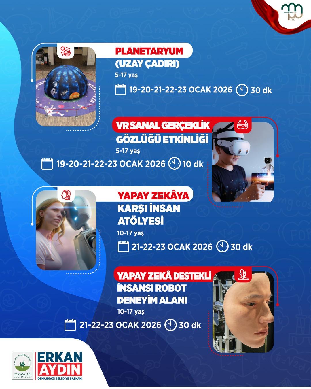 Bilim Şenliği’ne katılan çocuklar ve gençler; sanal gerçeklik uygulamalarından robotik kodlama atölyelerine, çeşitli yarışmalardan atölye çalışmalarına kadar birçok etkinliğe katılarak teknoloji dolu bir gün geçirme fırsatı bulacak. Etkinlik kapsamında robotik kodlama uygulamaları, astronomi, uzay temalı çalışmalar, kağıt sanatları, akıl ve zeka oyunları ile bilimsel içerikli birçok atölye yer alacak. Katılımcılar, hem eğlenerek öğrenme imkanı yakalayacak, hem de bilim ve teknolojiye olan ilgilerini geliştirecek. Sanal gerçeklik deneyimleri ve robotik kodlama etkinlikleri sayesinde çocuklar ve gençler, geleceğin teknolojilerini yakından tanıma şansı elde edecek.