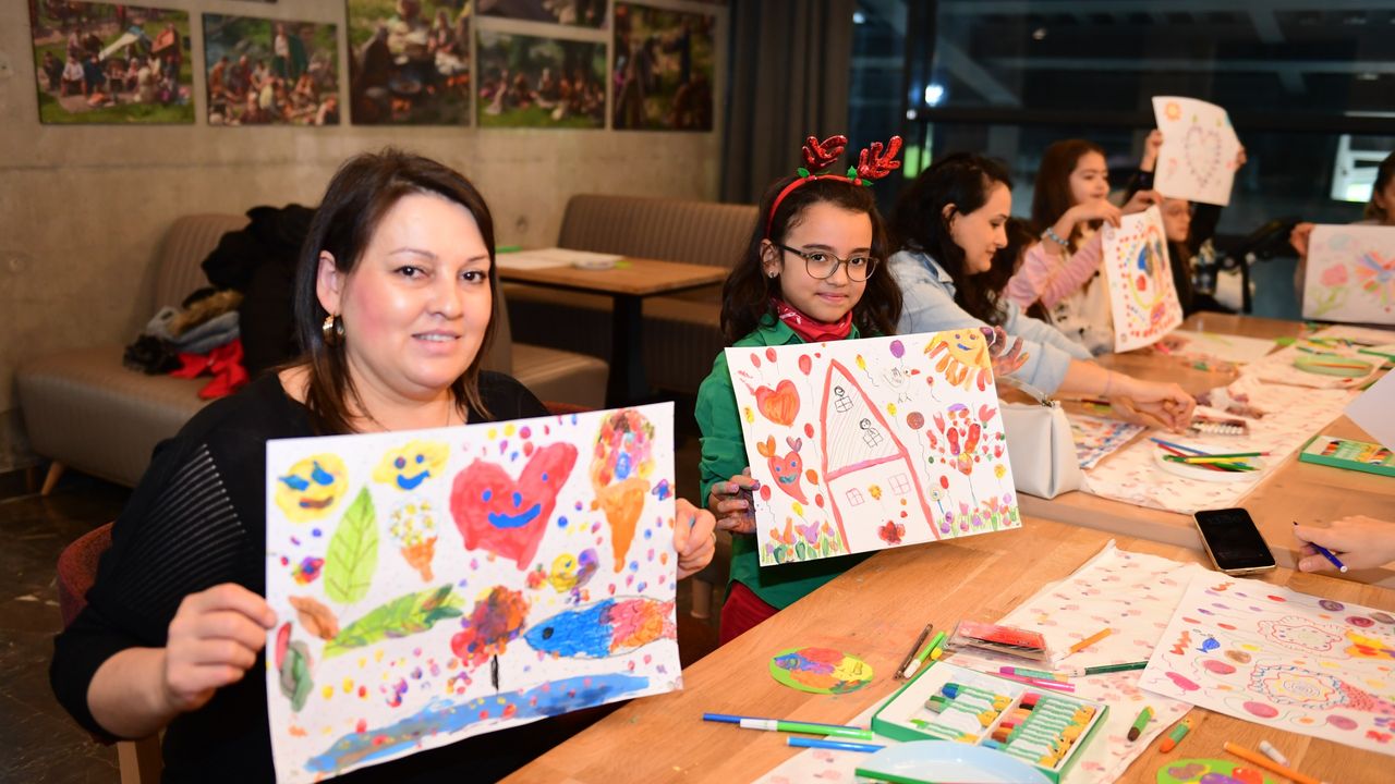 “Bu atölyemizde anneler ve çocukların dünyayı birbirlerinin gözünden nasıl algıladıklarını sanat yoluyla keşfetmelerini amaçlıyoruz. Serbest resim çalışmasıyla ortak bir üretim süreci oluşturuyoruz. Aynı resim, farklı bakış açılarıyla bambaşka anlamlar kazanabiliyor. Çocuğun bir bulut olarak çizdiği figür, annede bir hayvana; çocuğun bir üçgen olarak resmettiği şekil, annede bir dondurmaya dönüşebiliyor. Aslında dünyayı birbirinin gözlerinden nasıl keşfettiklerini görmek için bu çalışmayı yapıyoruz. Amacımız, anne ve çocukları ortak bir paydada buluşturarak birlikte anlamlı bir sanat eseri ortaya çıkarmak.”