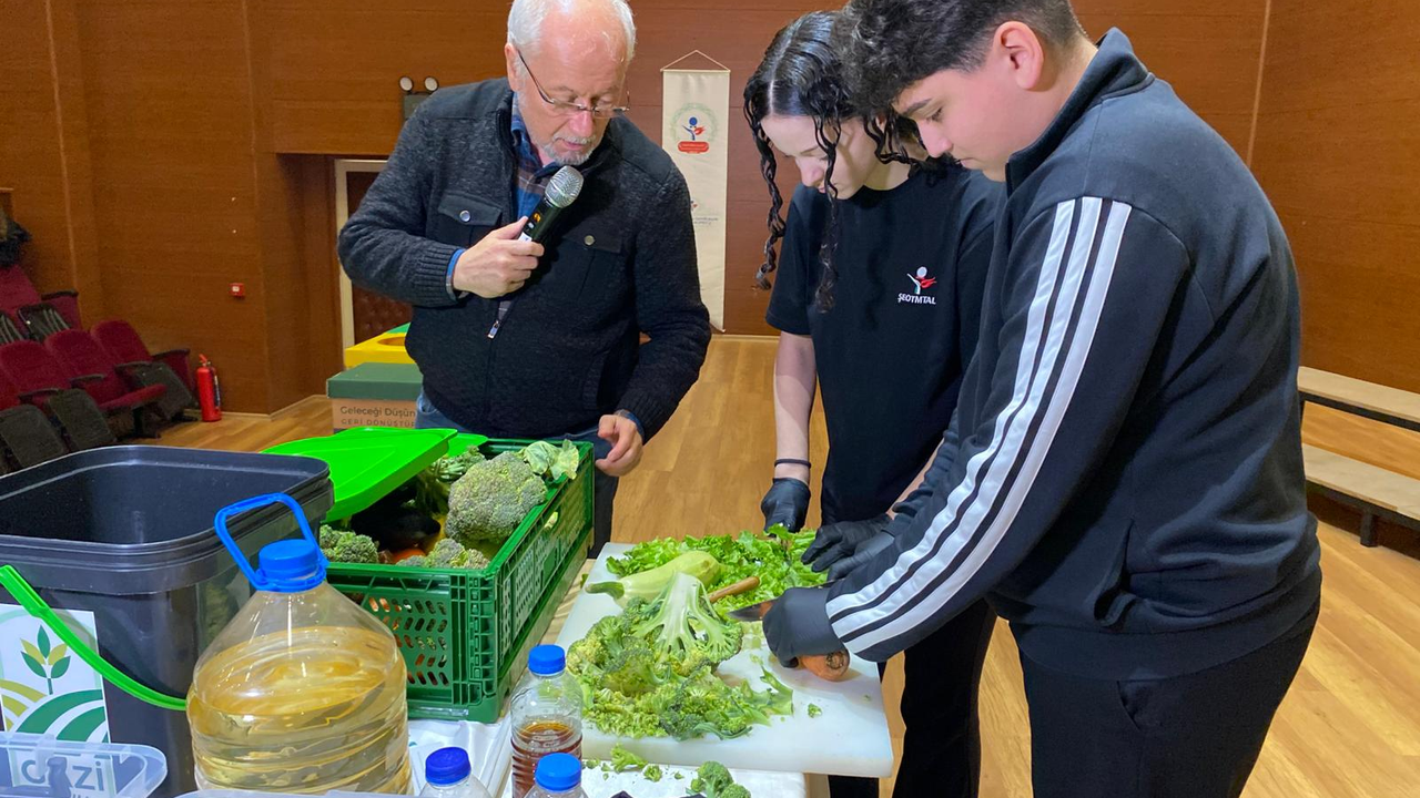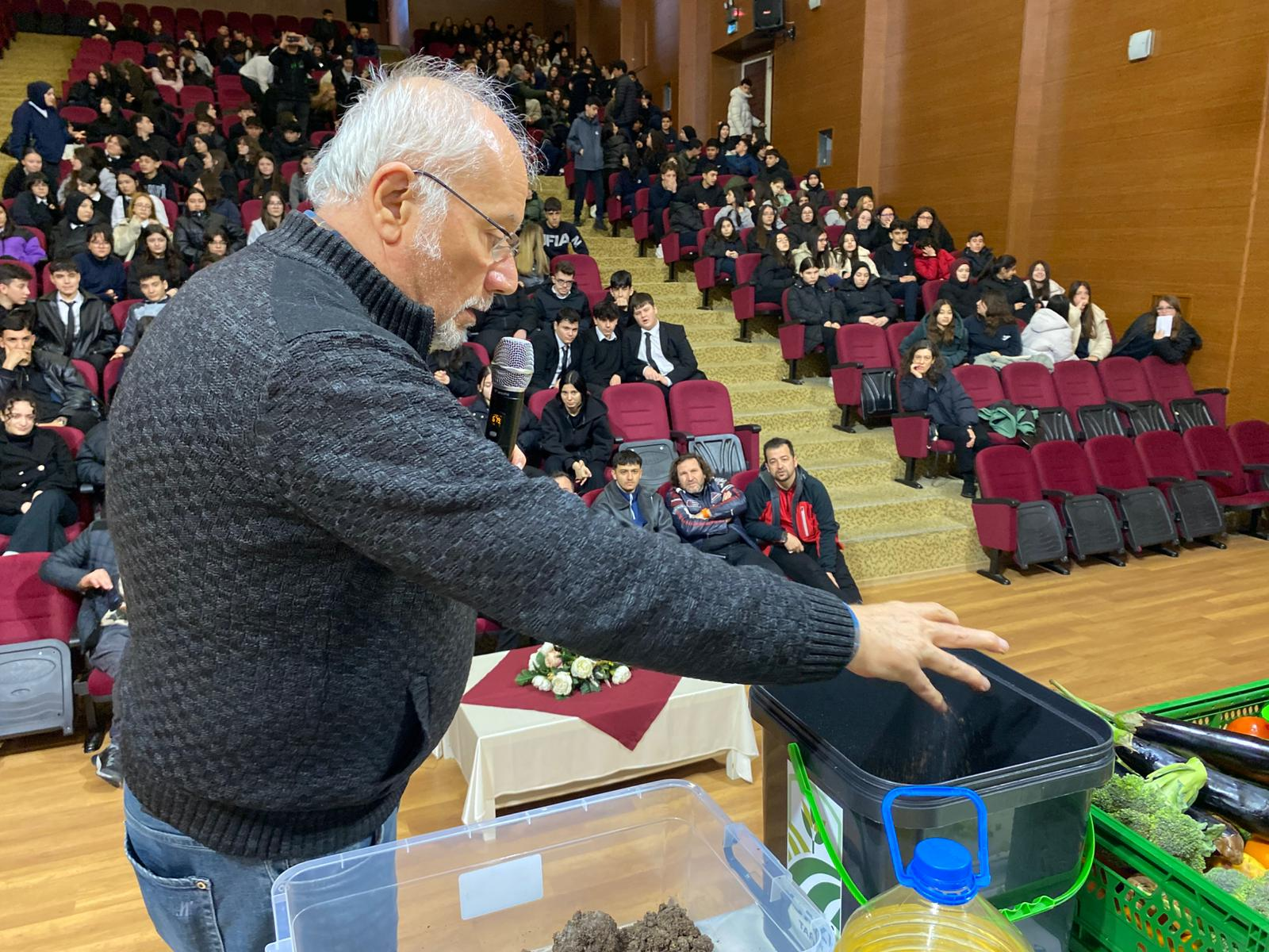 Teorik bilginin yanı sıra uygulamaya da yer verilen etkinlikte, Gazi Tarım AŞ Genel Müdürü Arca Atay öncülüğünde kompost atölyesi düzenlendi. Öğrenciler, organik atıkların nasıl değerlendirilebileceğini birebir deneyimleyerek öğrendi.