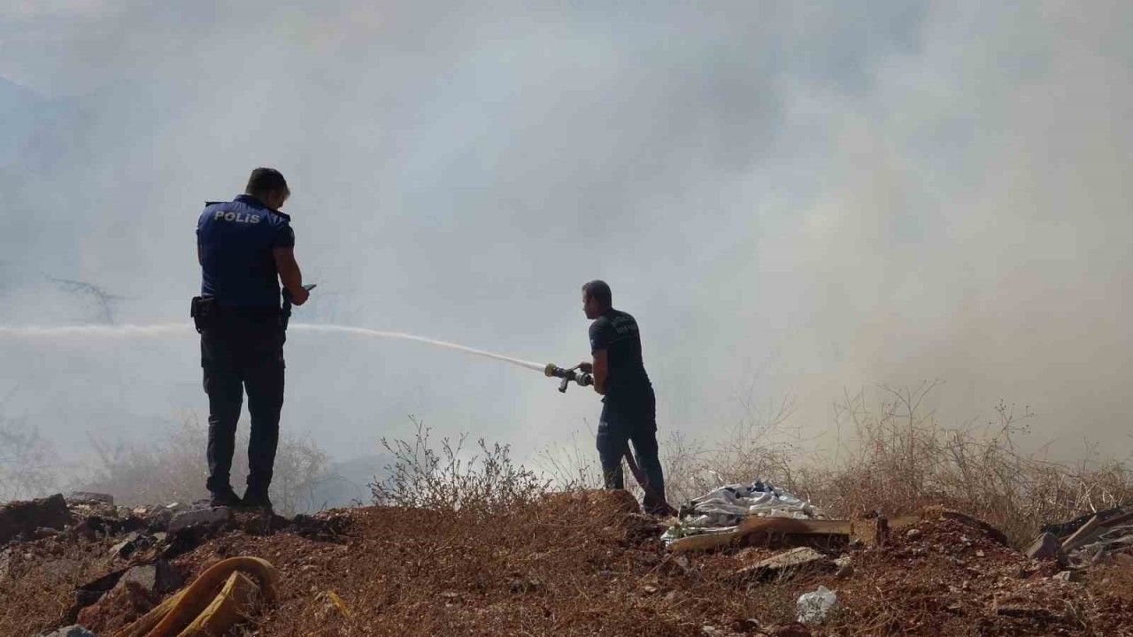 Antalya’da otluk ve ağaçlık alanda çıkan yangın, itfaiye ekiplerinin müdahalesiyle büyümeden söndürüldü.