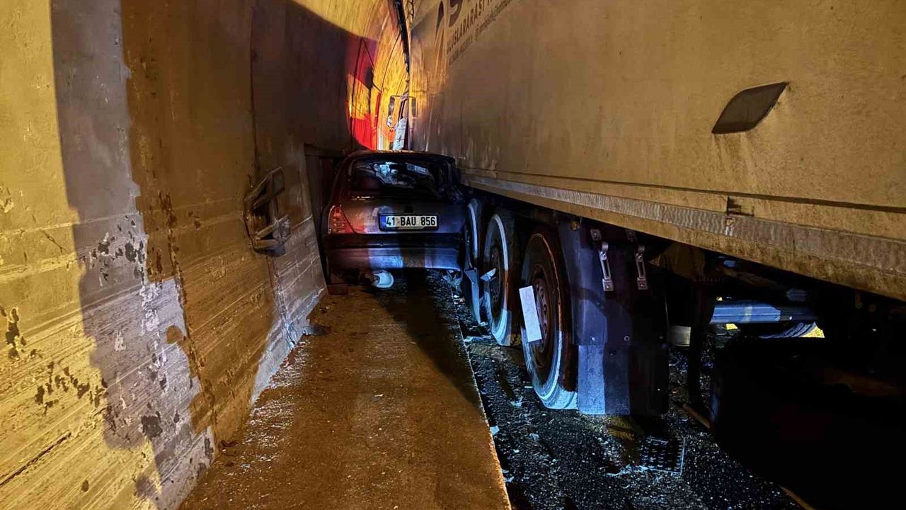 Kaza, saat 16.15 sıralarında TEM Otoyolu'nun İzmit ilçesi geçişi İstanbul istikametinde meydana geldi. M.K. idaresindeki 27 HG 806 plakalı tır aynı yönde giden M.E.Y. hakimiyetindeki 41 BAU 856 plakalı otomobili iddiaya göre tünel duvarına sıkıştırdı. Otomobil tünel duvarı ile tırın arasında kalan otomobil hurdaya dönerken, kazada yaralanan olmadı. Çevredeki vatandaşların ihbarı üzerine olay yerine sağlık ekipleri, itfaiye ve jandarma sevk edildi.