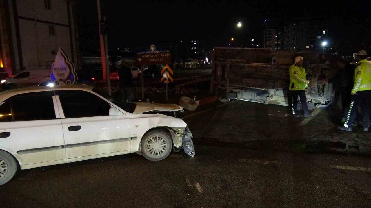 Malatya'da otomobil ile çarpışan kamyonet devrildi. Kazada 1 kişi yaralandı.