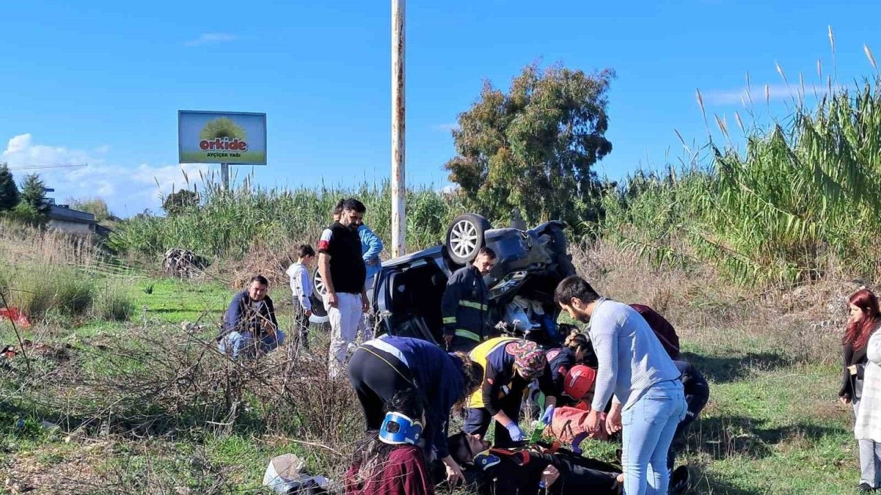Antalya’nın Serik ilçesinde otomobilin takla atarak şarampole yuvarlandığı kazada aynı aileden 3 kişi yaralandı.