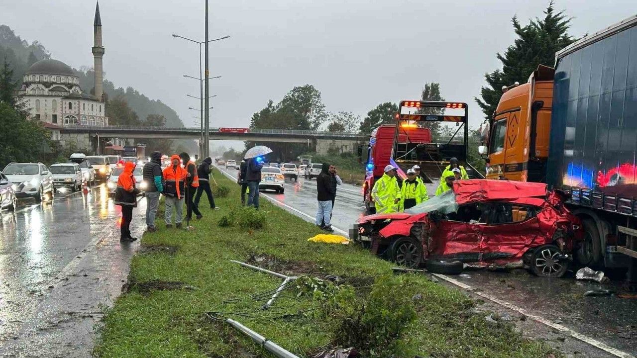 Rize’de otomobilin tırın dorsesine çarptığı kazada 3 kişi hayatını kaybetti.