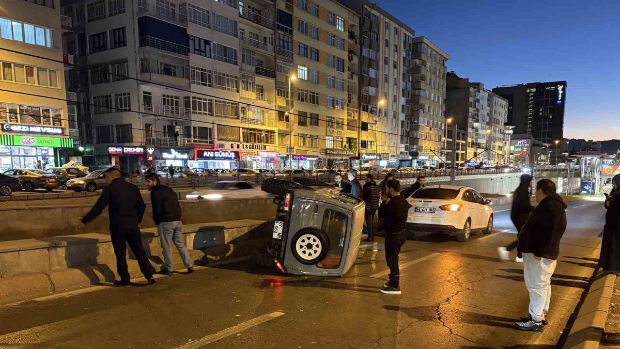 Kayseri’nin Kocasinan ilçesinde otomobilin arkadan çarptığı cip yan yatarken, yol araç trafiğe kapandı.