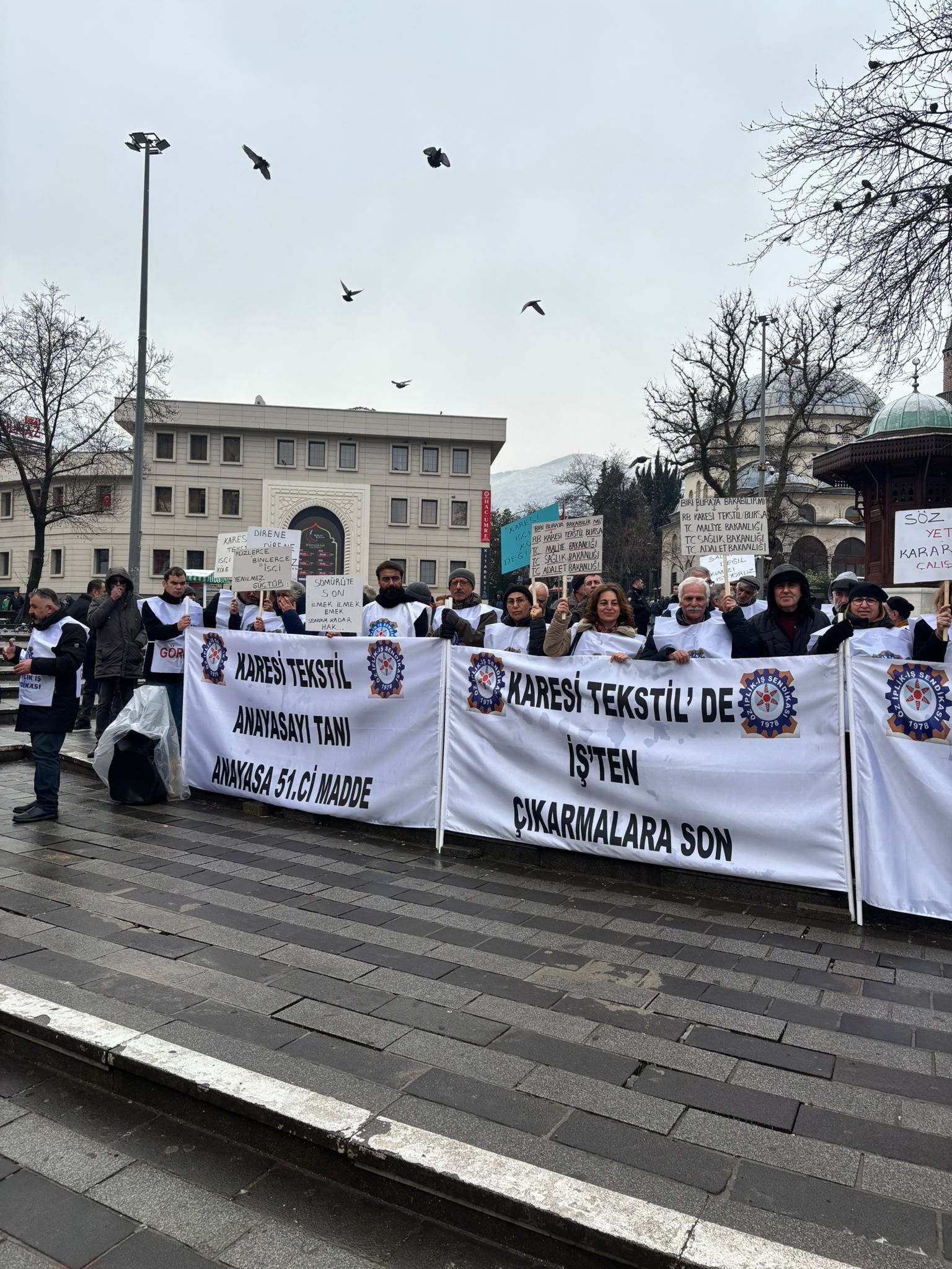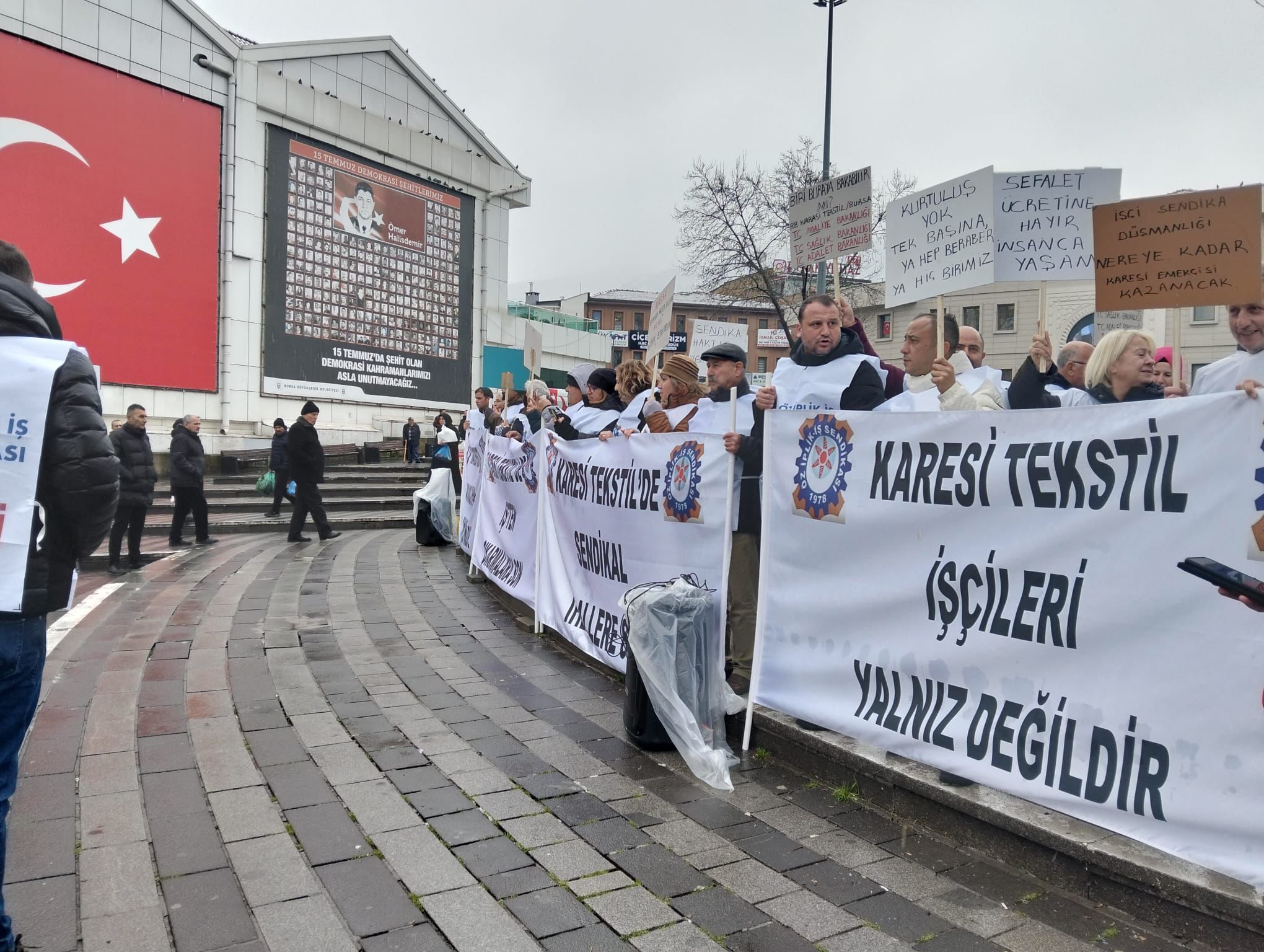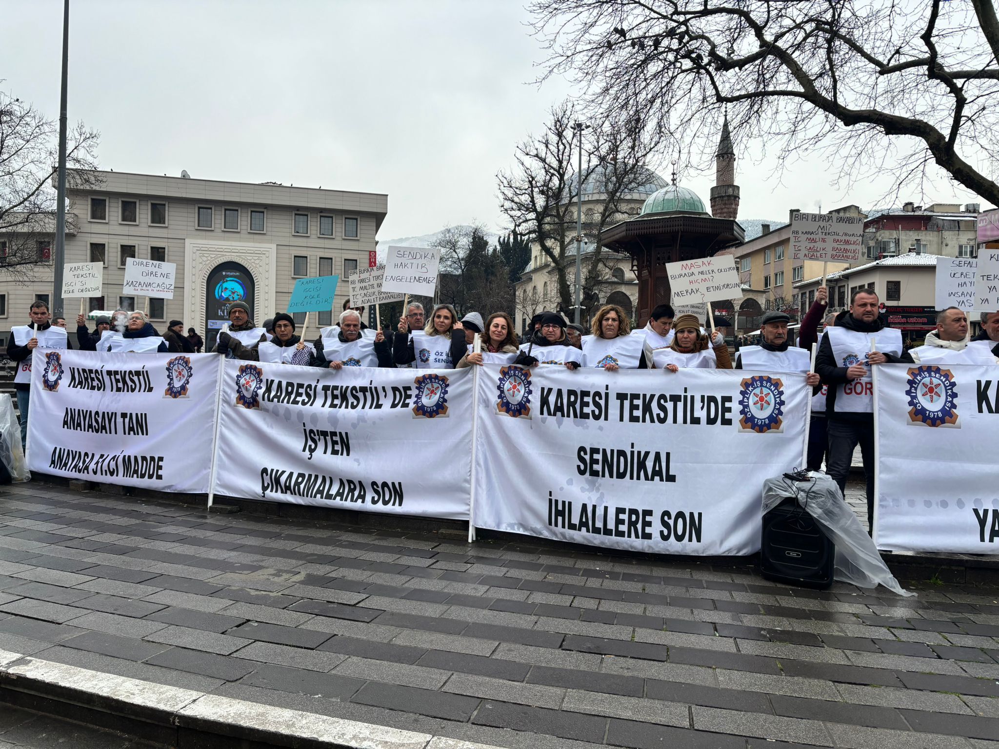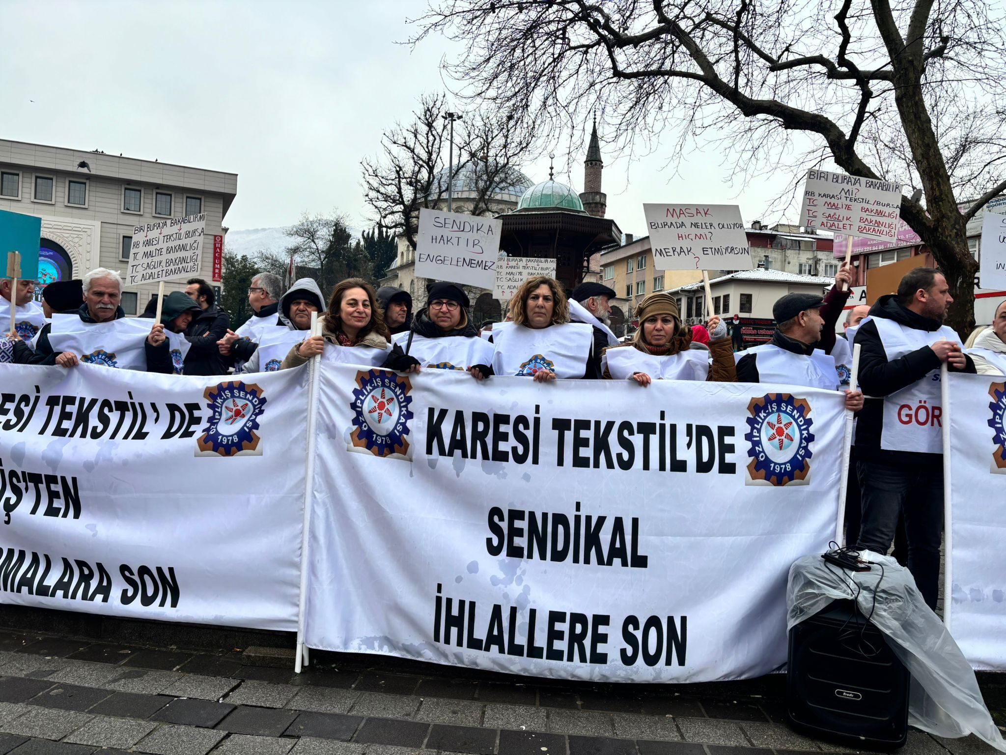 Bursa’da Karesi Tekstil önünde toplanan Öz İplik İş Sendikası yöneticileri ve işçiler, sendikalaşma sürecinin ardından işveren tarafından baskı ve yıldırma politikalarının devreye sokulduğunu iddia etti.