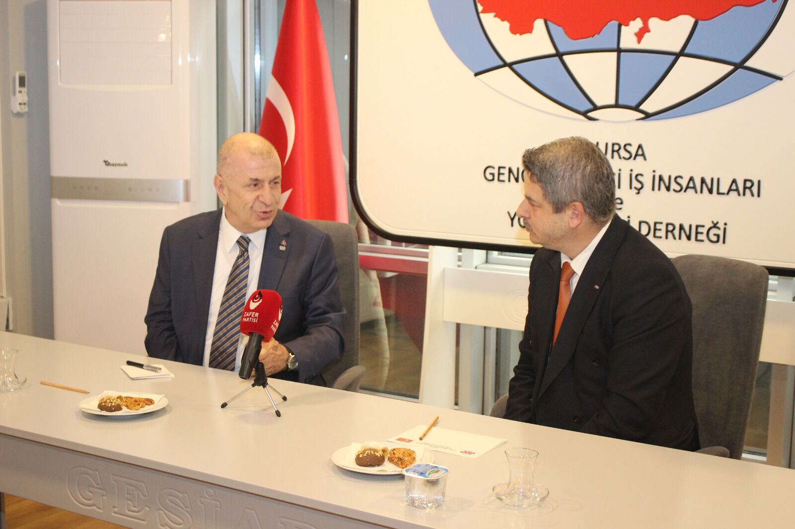 Ümit Özdağ'a, Zafer Partisi Genel Merkez Yöneticileri, Genel İdare Kurulu ve Merkez Disiplin Kurulu üyeleri ile Bursa il ve ilçe teşkilatlarının yöneticilerinin de eşlik ettiği ziyaret, soru-cevap bölümüyle devam etti.