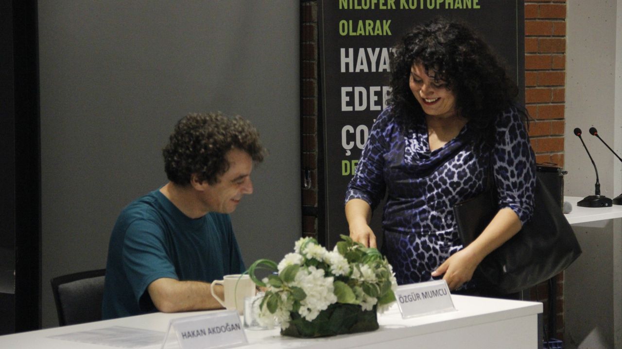 Söyleşinin sonunda katılımcıların sorularını da yanıtlayan Özgür Mumcu’ya, Nilüfer Belediye Başkanı Şadi Özdemir’in eşi Nuray Özdemir günün anısına hediye verdi. Mumcu, etkinliğin sonunda son romanı "Dünyalılar"ı okurları için imzaladı.