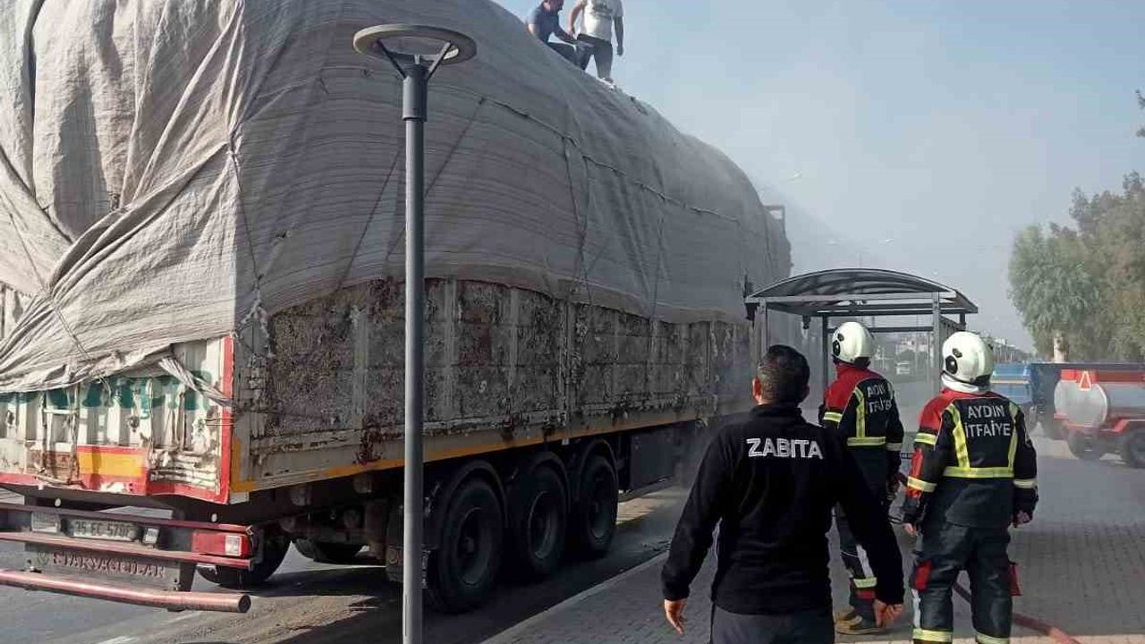 Aydın’ın Germencik ilçesinde pamuk yüklü tırda çıkan yangın, itfaiyenin hızlı müdahalesiyle büyümeden söndürüldü.