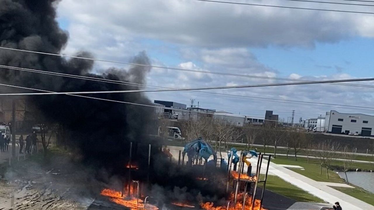 Tekirdağ'ın Ergene ilçesinde çocukların yaktığı ateş nedeniyle parktaki oyun grupları alev alev yandı.