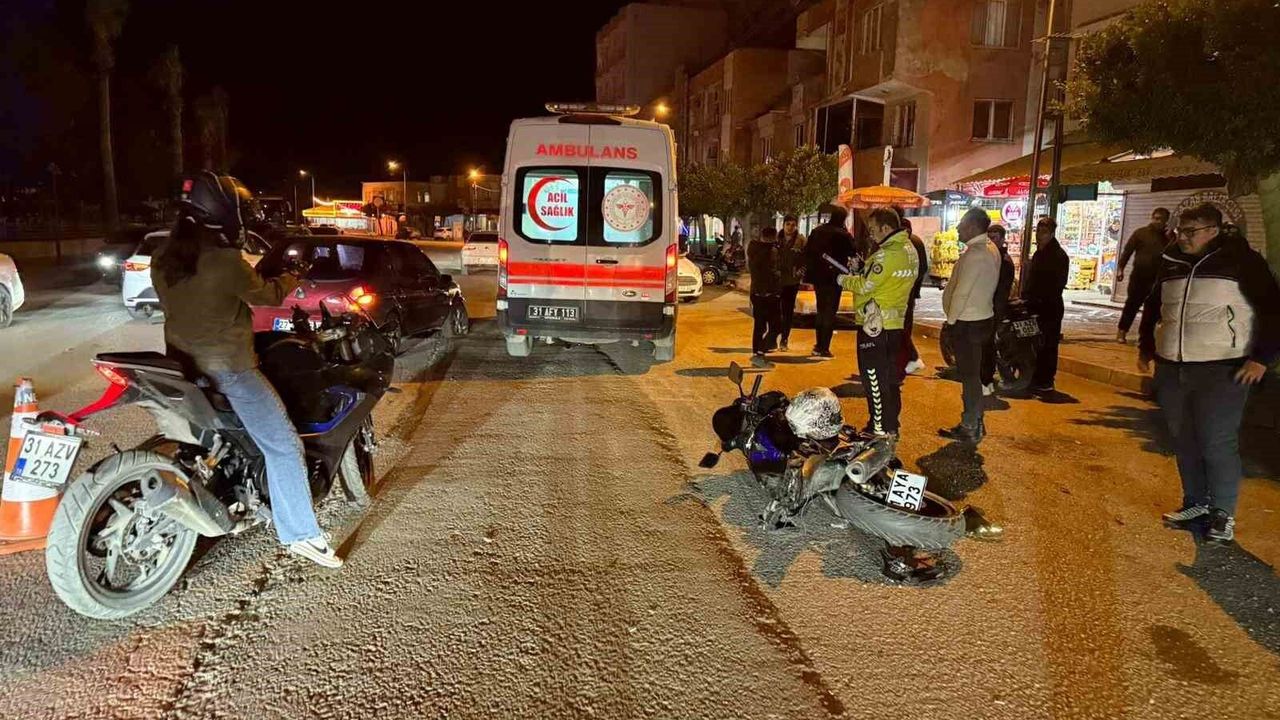 Hatay'ın Payas ilçesinde karşıdan karşıya geçmeye çalışan yayaya çarpmamak için manevra yapan motosiklet sürücüsü, otomobille çarpışarak yaralandı.