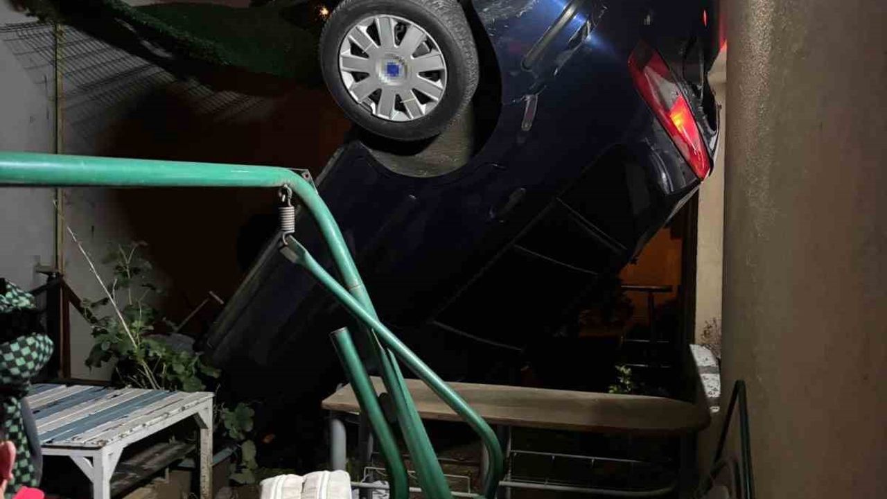 Pendik'te kontrolden çıkan otomobilin istinat duvarından apartman bahçesine düştüğü kazada 2 kişi yaralandı.