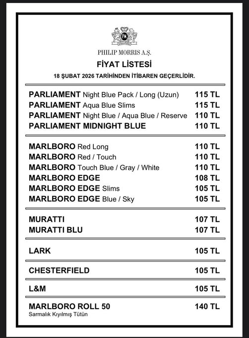 Son fiyat artışıyla birlikte sigara grubunda fiyatlar genel olarak 105 TL ile 115 TL aralığına yerleşti. Bayiler, önümüzdeki dönemde maliyet baskısına bağlı olarak yeni fiyat güncellemelerinin de gündeme gelebileceğini belirtiyor.