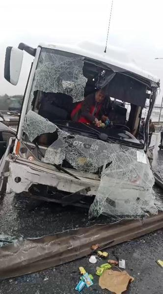 Başakşehir, Kuzey Marmara Otoyolu Fenertepe polisleri taşıyan servis aracının da aralarında olduğu zincirleme kaza meydana geldi.