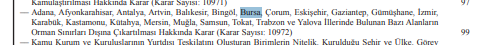 Karara göre; Adana, Afyonkarahisar, Antalya, Artvin, Balıkesir, Bingöl, Bursa, Çorum, Eskişehir, Gaziantep, Gümüşhane, İzmir, Karabük, Kastamonu, Kütahya, Mersin, Muğla, Samsun, Tokat, Trabzon ve Yalova illerinde bazı alanların orman sınırları dışına çıkarılması, bazı alanların ise orman olarak tescil edilmesi kararlaştırıldı.