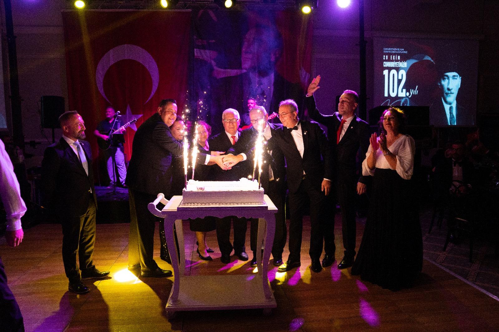 Konuşmaların ardından sahneye gelen 102. yıl pastası büyük bir coşkuyla kesildi.