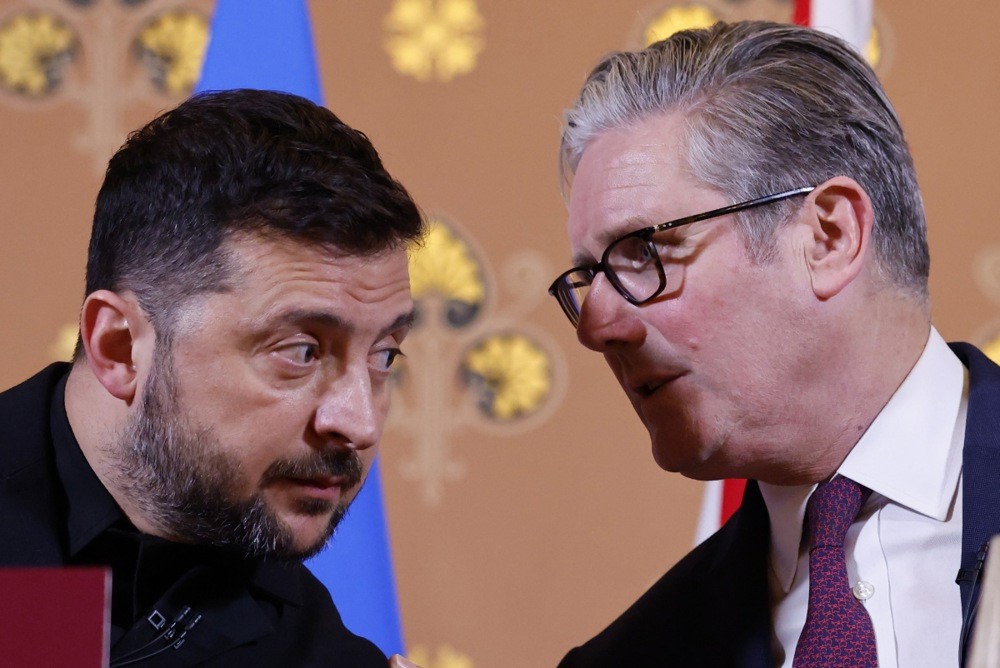 İngiltere Başbakanı Keir Starmer, Ukrayna Devlet Başkanı Vladimir Zelenskiy, Danimarka Başbakanı Mette Frederiksen, Hollanda Başbakanı Dick Schoof ve NATO Genel Sekreteri Mark Rutte, İngiltere’nin başkenti Londra’da gerçekleştirilen Gönüllüler Koalisyonu toplantısının ardından ortak basın toplantısı düzenledi.