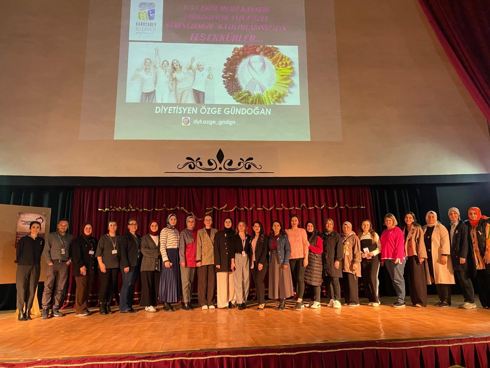 Öte yandan Karacabey Belediyesi, İlçe Sağlık Müdürlüğü ile işbirliği yaparak Meme Kanseri Farkındalık Ayı kapsamında düzenlenen etkinlikte de önemli bir rol üstlendi. Diyetisyen Özge Gündoğan, "Meme Kanseri ve Beslenme" konulu sunum yaparken, İlçe Sağlık Müdürlüğü’nden Dr. Sümeyye Çam da erken teşhis, korunma yöntemleri ve ücretsiz tarama testleri hakkında katılımcıları bilgilendirdi.
