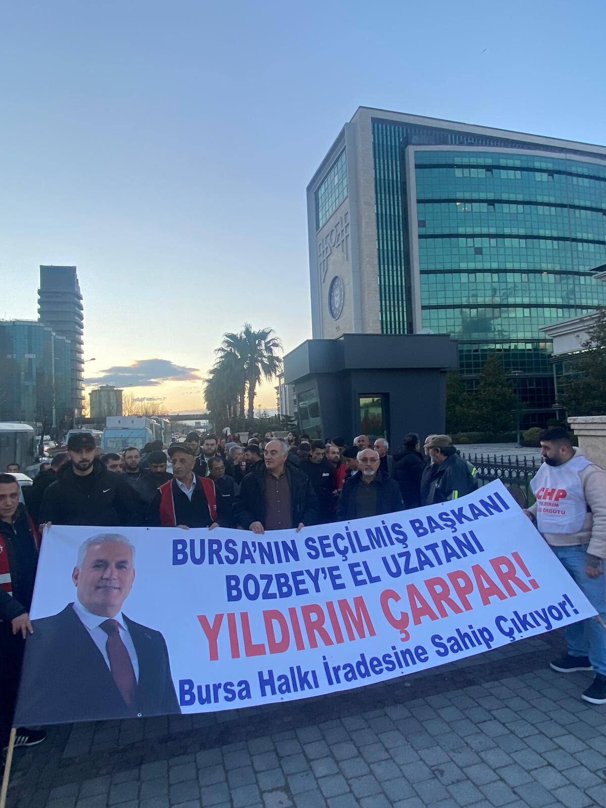Mustafa Bozbey’in gözaltına alınmasının üçüncü gününde Bursalılar, Bursa Büyükşehir Belediyesi binası önünde bir araya geldi. Eyleme çok sayıda siyasi parti, sendika ve sivil toplum kuruluşu katılırken, kalabalık “halkın iradesi” vurgusu yaptı.