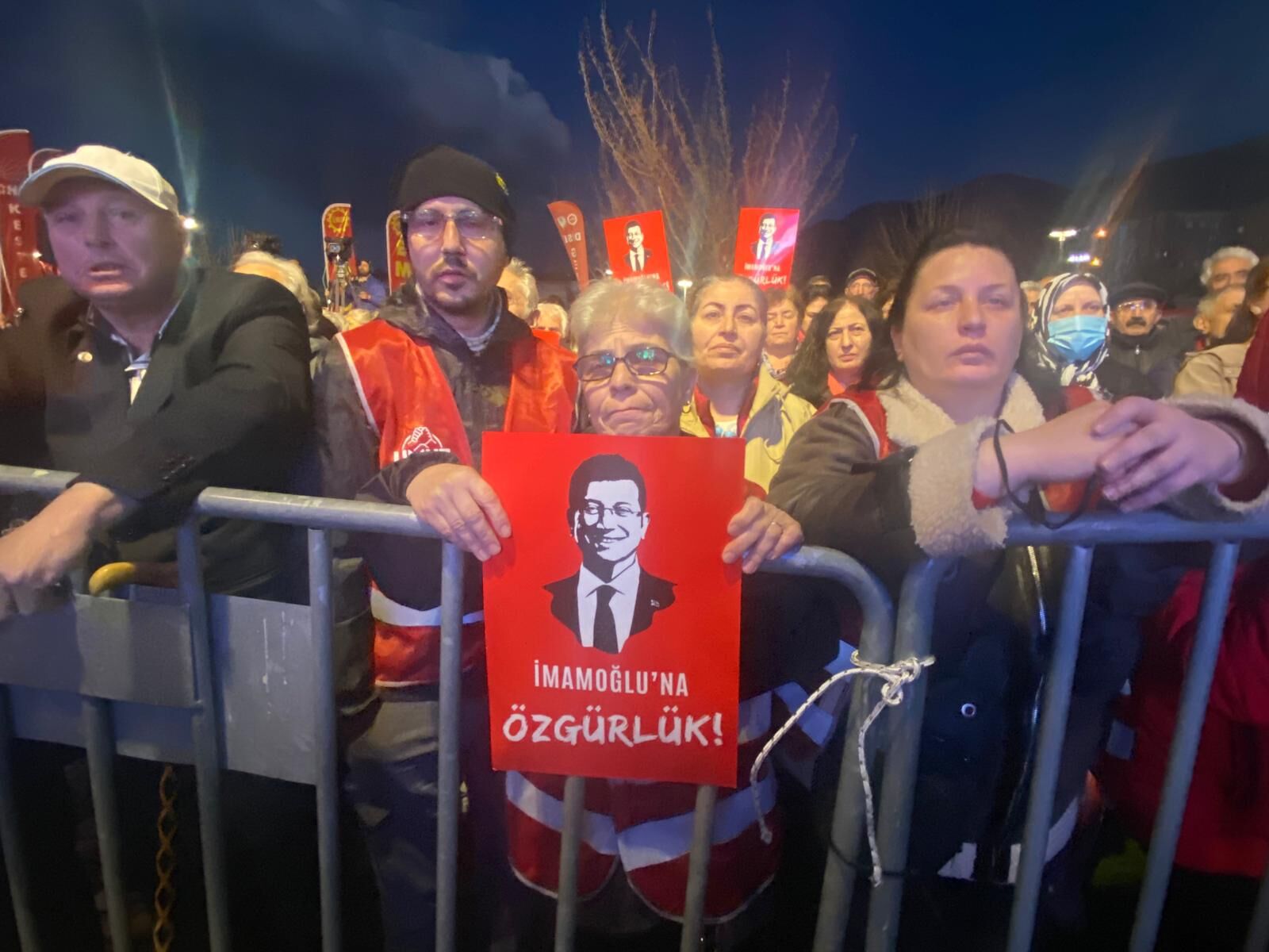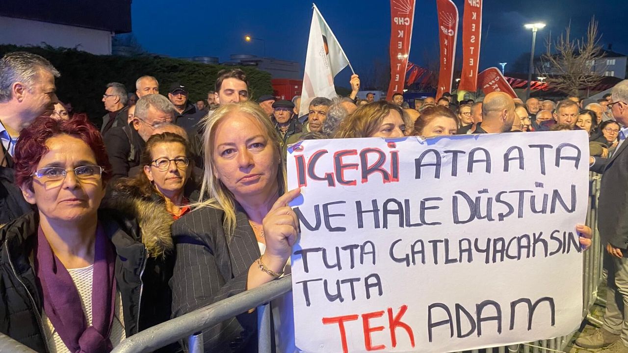 Toplanan vatandaşlar, seçilmiş bir belediye başkanına yönelik sürece tepki göstererek Bozbey için özgürlük talebinde bulundu.