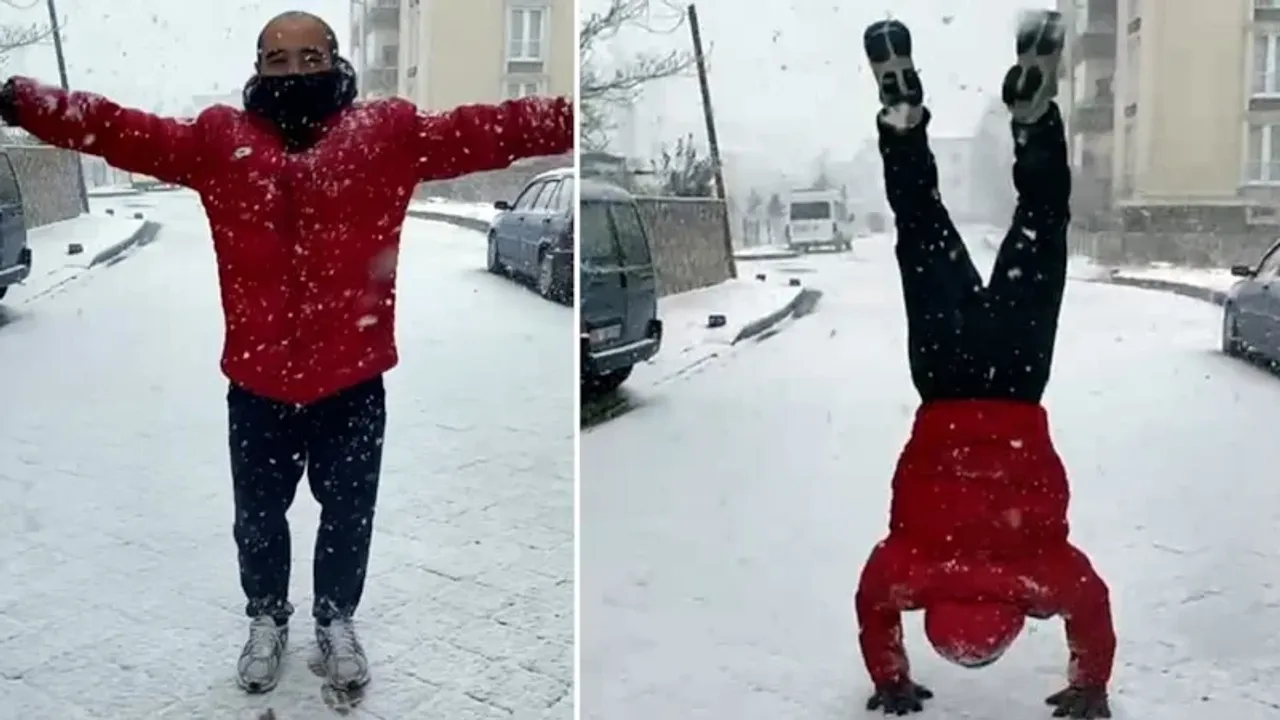 Samsun'un Terme ilçesinde sabah saatlerinden itibaren ilçeyi beyaza bürüyen kar yağışı, vatandaşları sokağa dökerken, geri takla alanında Guinness Rekorlar Kitabı’na giren Terme Judo Kulübü Antrenörü Osman Ismak da karla kapanan yolda art arda 20 geri takla atarak, kar sevincine ortak oldu.