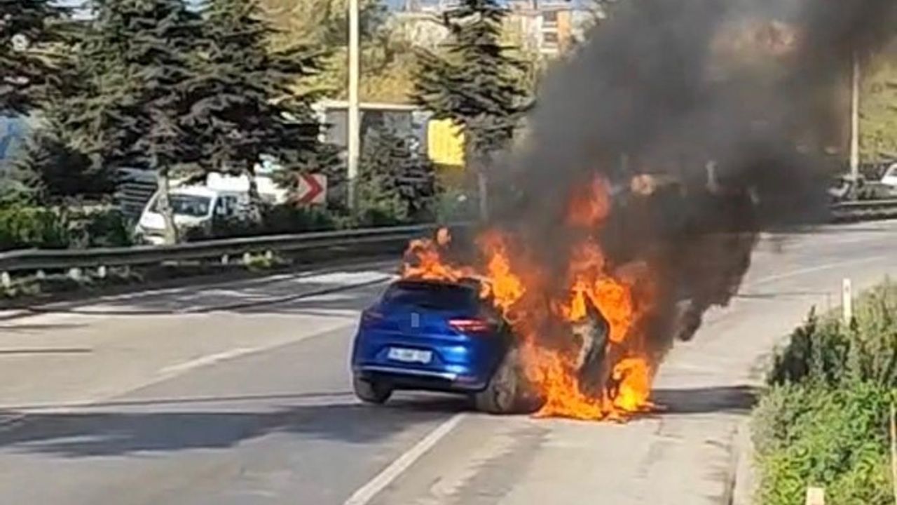 Samsunsporlu futbolcu Anthony Musaba’nın kullandığı kiralık otomobil motor kısmından alev alarak kısa sürede küle döndü. Futbolcu olaydan yara almadan kurtuldu.