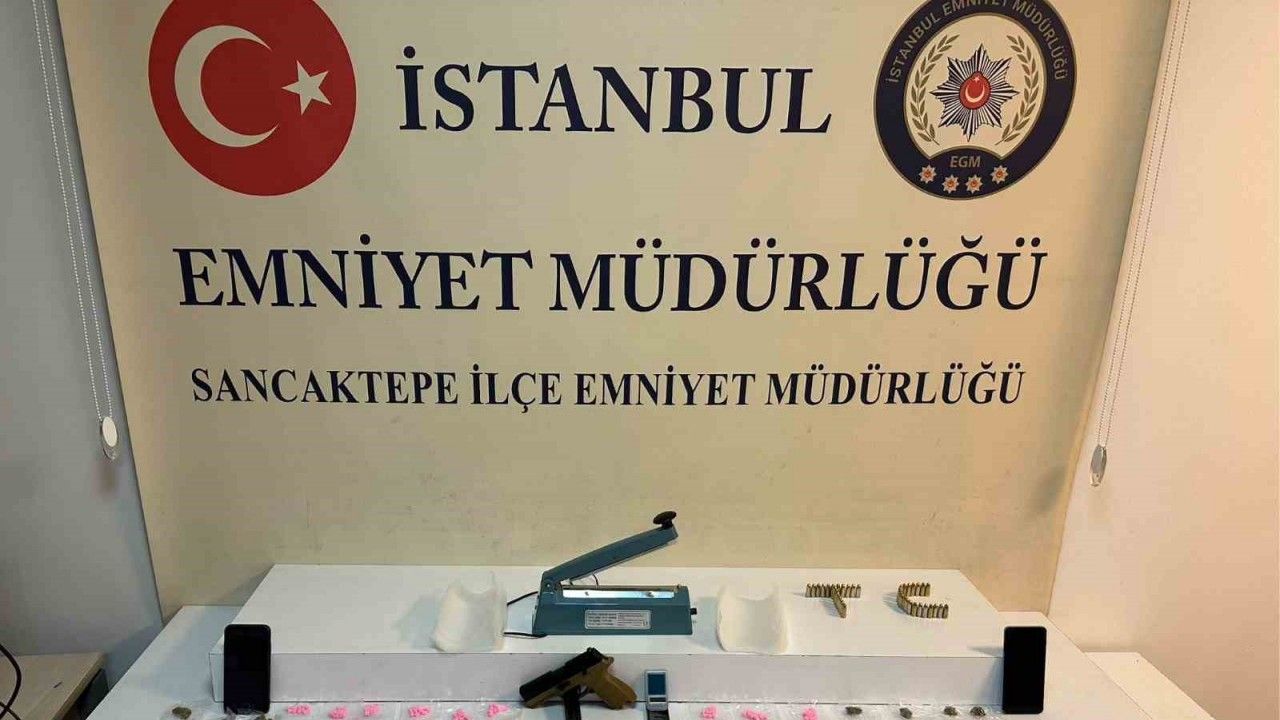 Sancaktepe İlçe Emniyet Müdürlüğü ekipleri, 12 Aralık’ta Abdurrahmangazi Mahallesi’nde bir araca yönelik "mala zarar verme ve tehdit" suçunu işlediği belirlenen O.S. (28) ve S.D.’yü (16) yakalamak için çalışma başlattı. Şüpheli şahısların kullandığı aracı tespit eden ekipler Osmangazi Mahallesi’ndeki adrese baskın yaptı. Burada yakalanan şüphelilerden O.S.’nin iş yeri adresinde yapılan aramalarda ise; 127 parça halinde marihuana, 38 parça halinde toplam 380 adet uyuşturucu hap, 1 adet ruhsatsız tabanca ve şarjör, 114 adet fişek, 1 hassas terazi, 1 pres makinesi ve çok sayıda şeffaf poşet ele geçirildi. Ayrıca, iş yerinde bulunan K.K. (43) ve R.U.M. (20) isimli şahıslar da yakalandı.