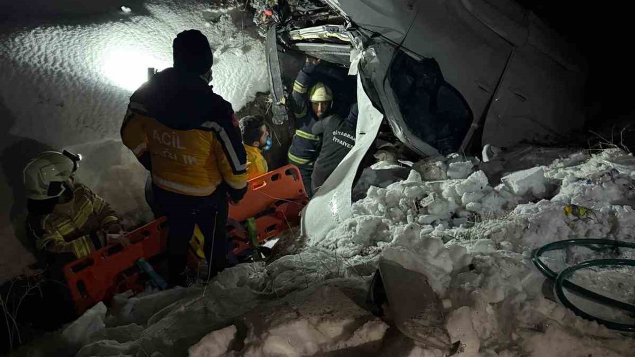 Diyarbakır'ın Bağlar ilçesinde şarampole devrilen aracın sürücüsü, itfaiye ekiplerince çıkartılarak sağlık ekiplerine teslim edildi.