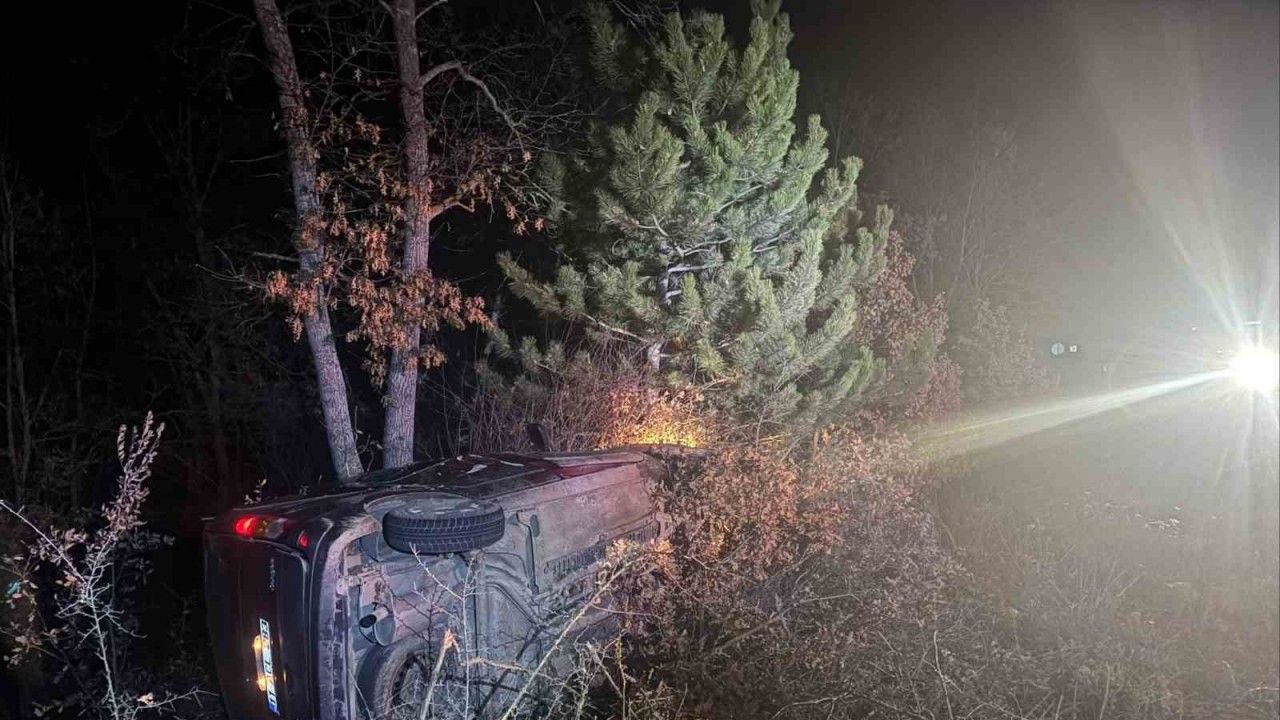Bilecik’te seyir halinde kontrolden çıkan otomobil şarampole uçarken, 2 kişi yaralandı.