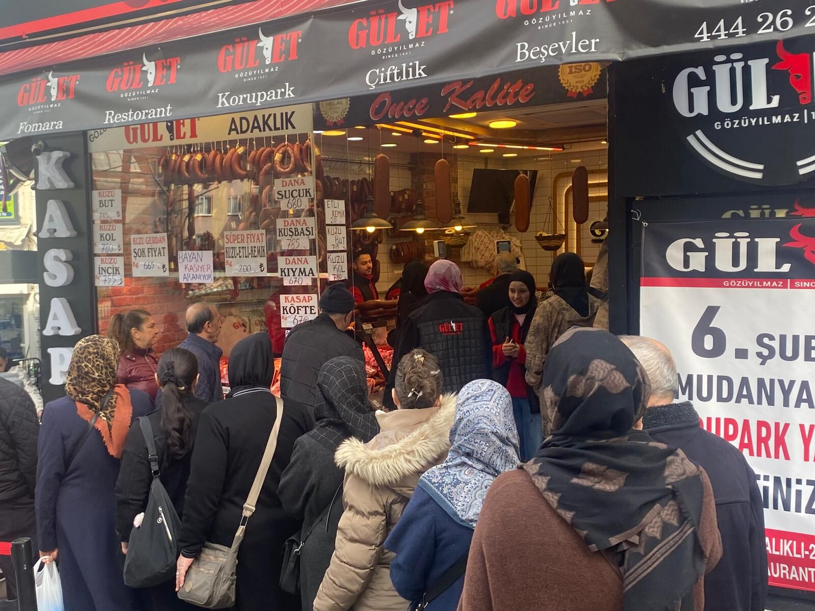 Bursa’da zincir marketlerde dana kıymanın kilosu 770 ile 850 lira arasında değişirken, Şehreküstü Meydanı’nda faaliyet gösteren bir kasap 670 liradan kıyma satışı yapınca vatandaş adeta dükkana akın etti. Sabah saatlerinden itibaren başlayan yoğunluk nedeniyle işletme, kalabalığı kontrol altına alabilmek için dükkan önüne güvenlik bantları çekmek zorunda kaldı.