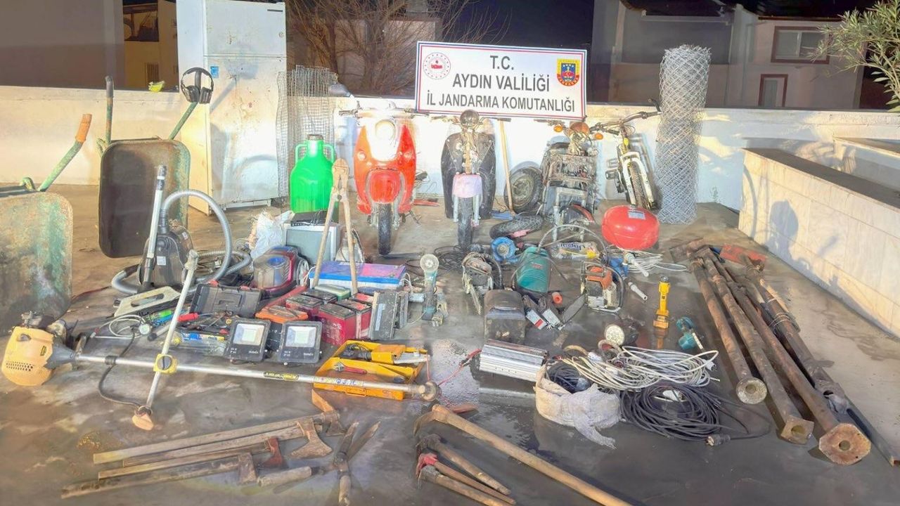 Olay, Kuşadası ilçesi Güzelçamlı Mahallesi'nde bulunan bir site içerisinde meydana geldi. Edinilen bilgiye göre R.A. (40) isimli şüpheli, ilçede etkili olan yağışların ardından yaşanan sel felaketini fırsat bildi. Site içerisinde bulunan 4 ayrı eve giren şüpheli, evede bulunan çok sayıda eşyayı çaldı. Dört ayrı ikametten hırsızlık yapıldığı yönünde yapılan müracaatlar üzerine jandarma ekiplerince çalışma başlatıldı. Yapılan incelemeler sonucuda olayı R.A.'nın gerçekleştirdiğini tespit eden jandarma ekipleri, şüphelinin yakalanması için harekete geçti. Şüphelinin ikametinde yapılan adli aramalarda 9 adet akü, 1 adet boru kaynatma makinesi, 1 adet inverter, 2 adet el arabası, 1 adet çim biçme makinesi, 2 adet bahçe aydınlatması, 2 adet testere, 1 adet araç yıkama makinesi, 1 adet uydu alıcısı, 1 adet televizyon, 1 adet 20 litre plastik fıçı, 1 adet 24 litre hidrofor, 2 adet araç teybi, 3 adet kapasitör, 1 adet reaktör bobini, 1 adet su pompası, 4 adet iskele demiri, 1 adet rezervuar tertibatı, 3 adet elektrikli motosiklet, 1 adet bisiklet, 10 metre bahçe teli, 1 adet su ısıtıcısı, 1 adet buzdolabı, 2 adet elektrikli süpürge, 2 adet spiral makinesi, 1 adet şarjlı dal budama testeresi, 1 adet şarjlı lamba, 2 adet el testeresi, 2 adet orak, 3 adet plastik boru makası, 1 adet çalı biçme makası, 1 adet boru anahtarı, 3 adet keser, 3 adet balta, 2 adet çapa, 1 adet çelik tel kesme makası, 70 metre elektrik kablosu, 1 adet takım çantası, 3 adet plastik boru, 3 adet helezyon boru, 2 adet bong aparatı, 1 adet siyah bantla sarılı poşet, 13 adet kuru sıkı fişek ele geçirildi. Ele geçirilen malzemelerden hırsızlık olayına konu olduğu değerlendirilen eşyalar sahiplerine teslim edildi, farklı olaylarla bağlantılı olabileceği değerlendirilen diğer malzemelerle ilgili de inceleme başlatıldı. Başlatılan adli tahkikat kapsamında gözaltına alınan şüpheli, işlemlerinin ardından Cumhuriyet Savcılığına sevk edildi. Olayla ilgili inceleme sürüyor.